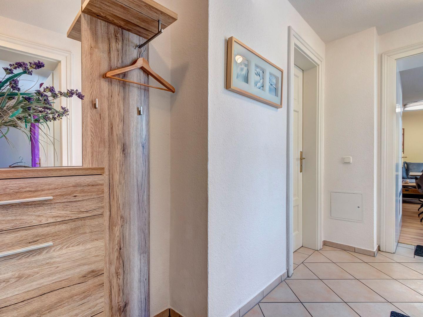 Die Wohnung verfügt über ein modernes Bad mit Dusche und WC. Sie ist über eine Treppe erreichbar und bietet durch ihre Ausstattung und Lage den idealen Rahmen für erholsame Urlaubstage.