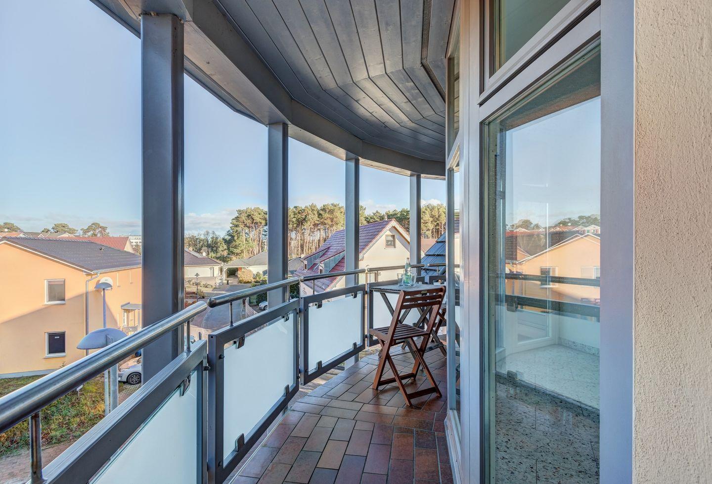 Willkommen in unserer beeindruckenden Maisonette-Wohnung mit 125 m² und drei Schlafzimmern, nur 450 m vom weißen Sandstrand in Ahlbeck entfernt! Die großzügige Glasfront im Eingangs- und Wohnbereich verleiht der Wohnung eine besondere Atmosphäre. Die beiden sonnigen Balkone, im Sommer besonders genossen, sind vom Wohnbereich und der Küche zugänglich. Im Winter sorgt der Kamin für Gemütlichkeit.