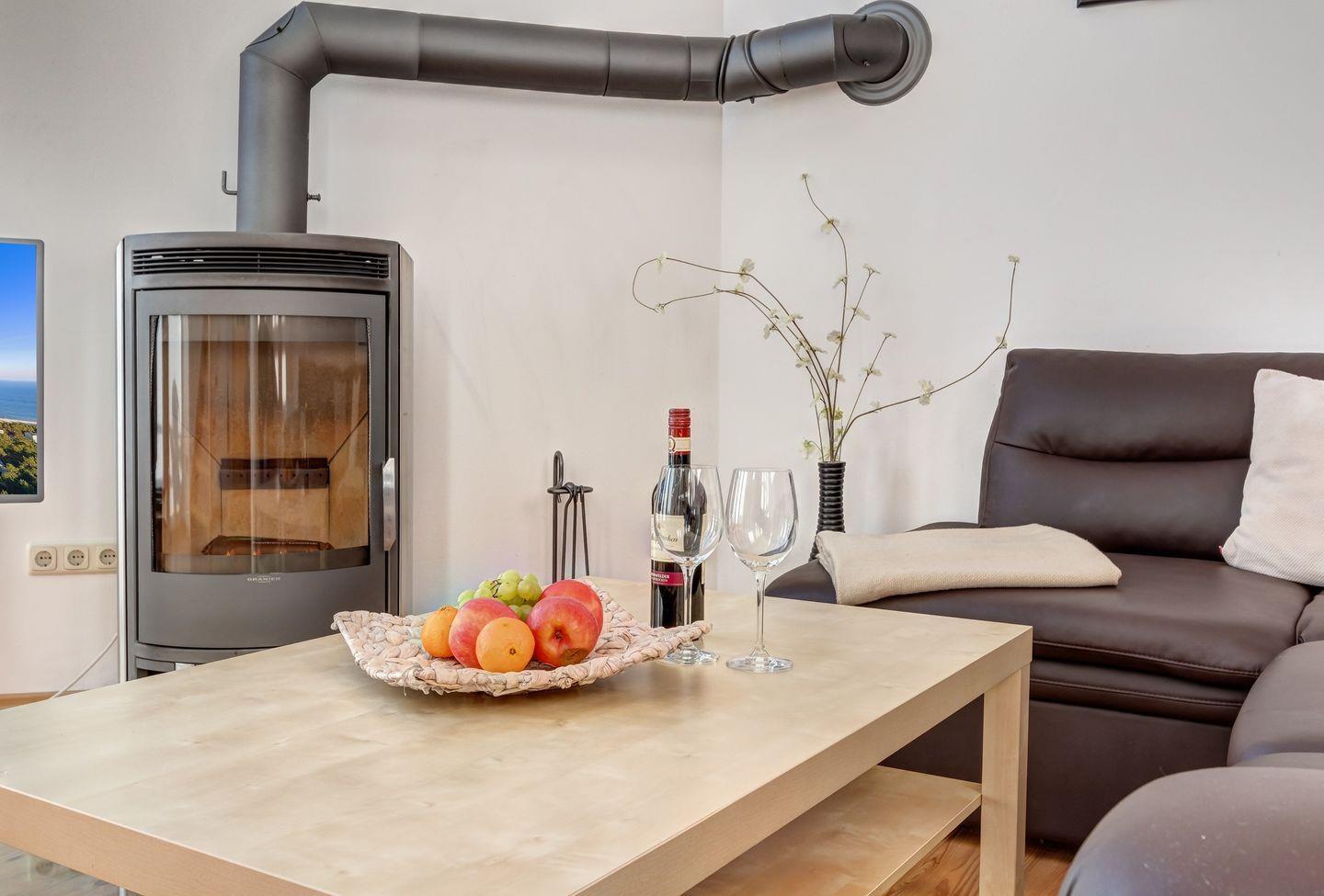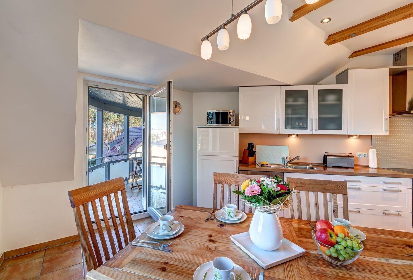 Genießen Sie die exklusive Maisonette-Ferienwohnung Kira mit Kamin, Balkonen und nur 450 m zum Sandstrand in Ahlbeck auf Usedom.