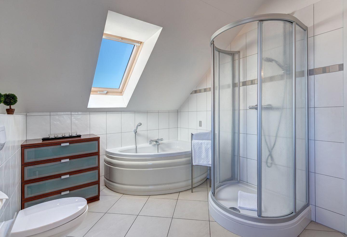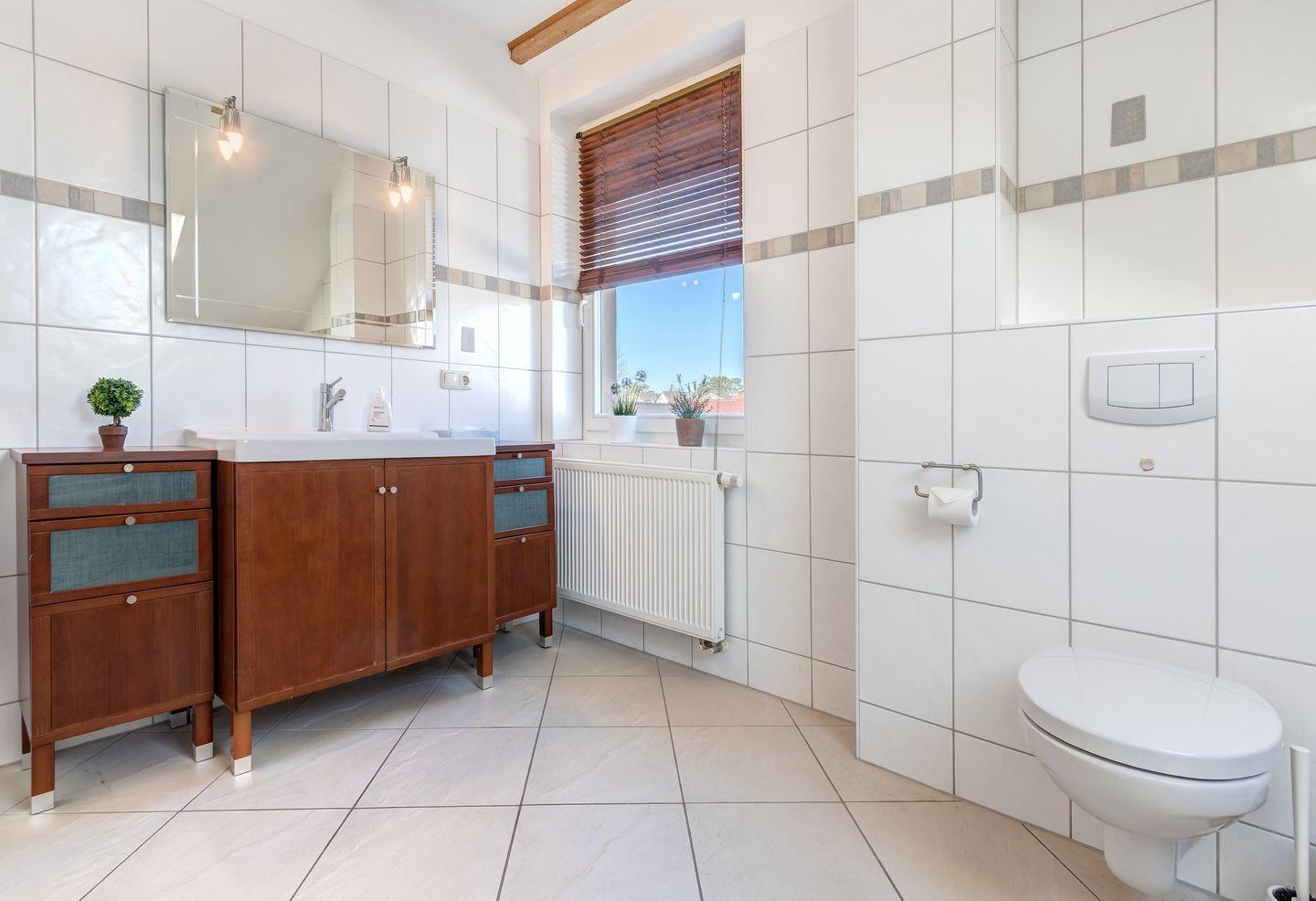 Ein großzügiges Bad mit Dusche und Badewanne sowie ein separates Gäste-WC runden das Angebot ab.