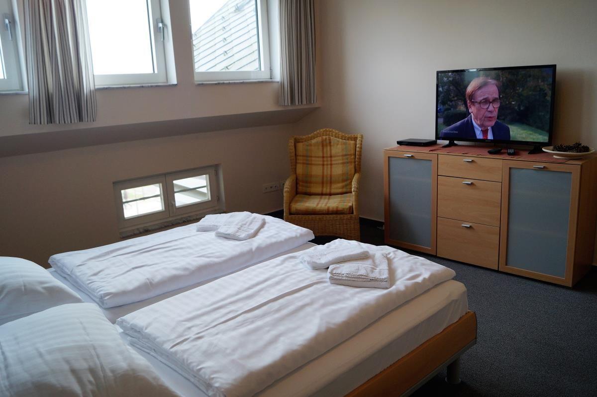 Es stehen zwei große und gleichwertige Schlafzimmer zur Verfügung, ausgestattet jeweils mit zwei Doppelbetten, je einem Kleiderschrank und Flachbild-TV. In Kombination mit den beiden Bädern ist diese Ferienwohnung somit auch hervorragend für vier Erwachsene geeignet. Zwei weitere Gäste können auf der Ausziehcouch im Wohnzimmer nächtigen.