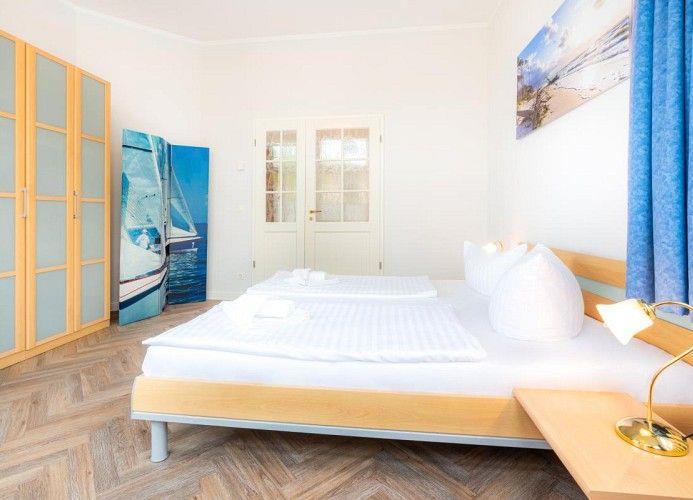 Die Ferienwohnung verfügt über drei separate Schlafzimmer. Eines davon ist besonders großzügig und bietet neben einem Doppelbett zusätzlich eine schöne Leseecke. In den beiden anderen Schlafräumen stehen jeweils ein Doppelbett bzw. in dem kleineren ein Einzelbett. An ausreichend Schrankplatz für die Urlaubsgarderobe ist in allen drei Zimmern gedacht worden.