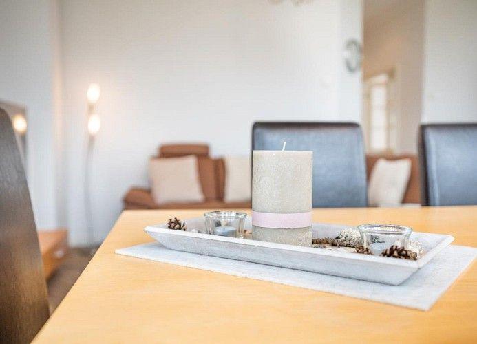Hell und großzügig präsentiert sich diese außergewöhnlich schöne Ferienwohnung in bester Lage auf der Insel. Mit Blickrichtung zur Strandpromenade bietet diese einzigartige Ferienunterkunft viel Raum für bis zu fünf Erwachsene. Drei separate Schlafzimmer mit je einem Doppelbett bzw. einem Einzelbett ermöglichen eine individuelle Urlaubsgestaltung mit unterschiedlichsten Personen-Konstellationen: sei es die Großfamilie mit drei Kindern, drei erwachsene Freundinnen mit Anspruch auf ein eigenes Zimmer, zwei Pärchen oder vieles mehr. Zwei vollwertig ausgestattete Bäder sowie ein geräumiger Wohnbereich mit integrierter Einbauküche und schönem Essplatz ermöglichen ein entspanntes Miteinander im Urlaub. In den Sommermonaten wird gerne zusätzlich die großzügige Terrasse mit Blick zur Strandpromenade genutzt.Auch für Leute mit Gehbehinderungen ist die Wohnung bestens geeignet: von der Tiefgarage aus gelangt man über einen Fahrstuhl ohne störende Türschwellen in die Wohnung. Ein gebührenfreier WLAN-Anschluss sowie eine Gemeinschaftswaschmaschine (Nutzung gegen Gebühr) runden das Angebot dieser schönen Ferienwohnung ab.