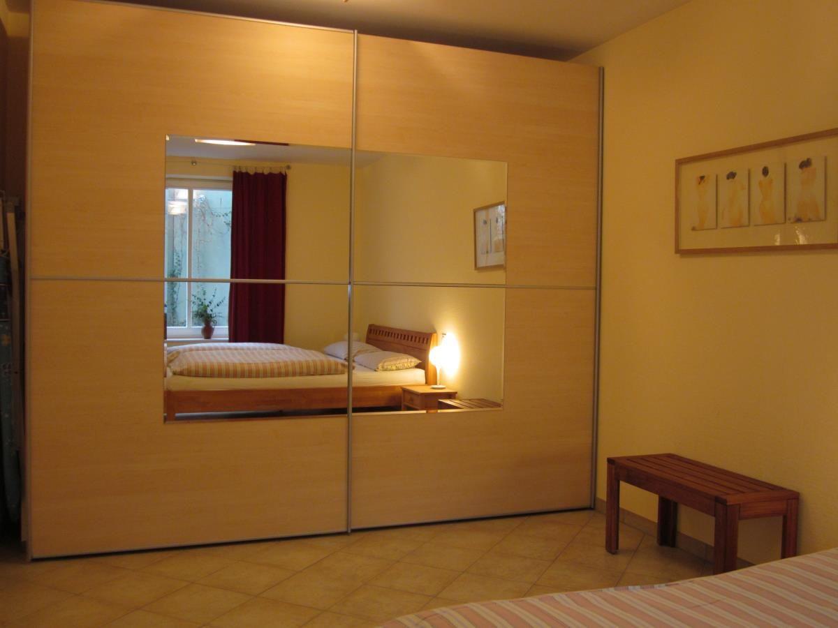 Der größere der beiden Schlafräume ist mit einem Doppelbett und genügend Schrankraum ausgestattet. Im kleineren Schlafzimmer finden ein Doppelstockbett sowie ein kleiner Schreibtisch ihren Platz.