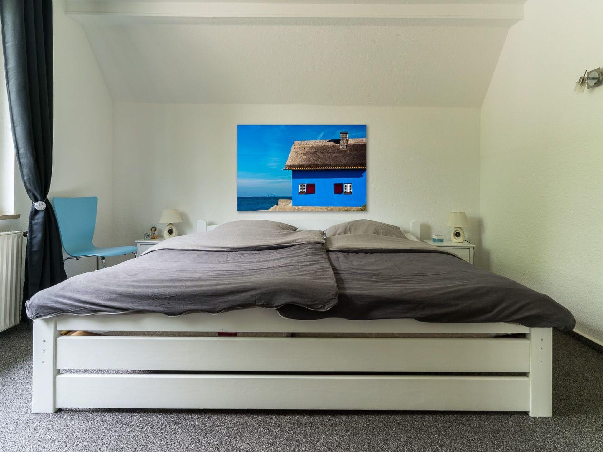 Das ca. 100 m² große Haus verfügt im Erdgeschoss über eine wunderschöne Veranda mit einem Esstisch mit Platz für bis zu sechs Personen. Von hier aus erreichen Sie die große Wohnstube, die mit einer gemütlichen Couch, einem Couchtisch und weiteren Sitzmöglichkeiten ausgestattet ist und das neu eingerichtete Schlafzimmer mit Doppelbett. In der voll ausgestatteten Wohnküche befindet sich ein Backofen, ein Cerankochfeld, ein Kühlschrank, eine Spülmaschine, ein Toaster, ein Wasserkocher, eine Filter Kaffeemaschine, Espressomaschine, kleiner Tiefkühler und ein ausziehbarer Esstisch mit Sitzbank und Stühlen. Die Küche lässt somit fast keinen Wunsch offen. Zu den Ausstattungsmerkmalen des Badezimmers zählen eine Badewanne, eine Toilette, ein Waschbecken, sowie ein Föhn. In der ersten Etage finden Sie ein Schlafzimmer mit einem Doppelbett (2 m Breite), zwei Nachttischen, einem Sofa und einer Kommode mit einem Fernseher vor. Das zweite Schlafzimmer verfügt über ein Bett für zwei Personen (1,60 m Breite), Ebenfalls ist ein großer Kleiderschrank vorhanden. Außerdem ist ein Badezimmer mit einer Dusche, einer Toilette, einem Waschbecken und einem Reisebügeleisen vorhanden. Gerne stellt Ihnen der Vermieter ein Kinderbett, sowie einen Kinderhochstuhl kostenfrei bereit. Das Haus ist nicht rollstuhlgerecht und nicht zu hundert Prozent kindersicher. Kostenfreies WLAN vorhanden. Des Weiteren stehen Ihnen zwei mobile Ventilatoren zur Verfügung.