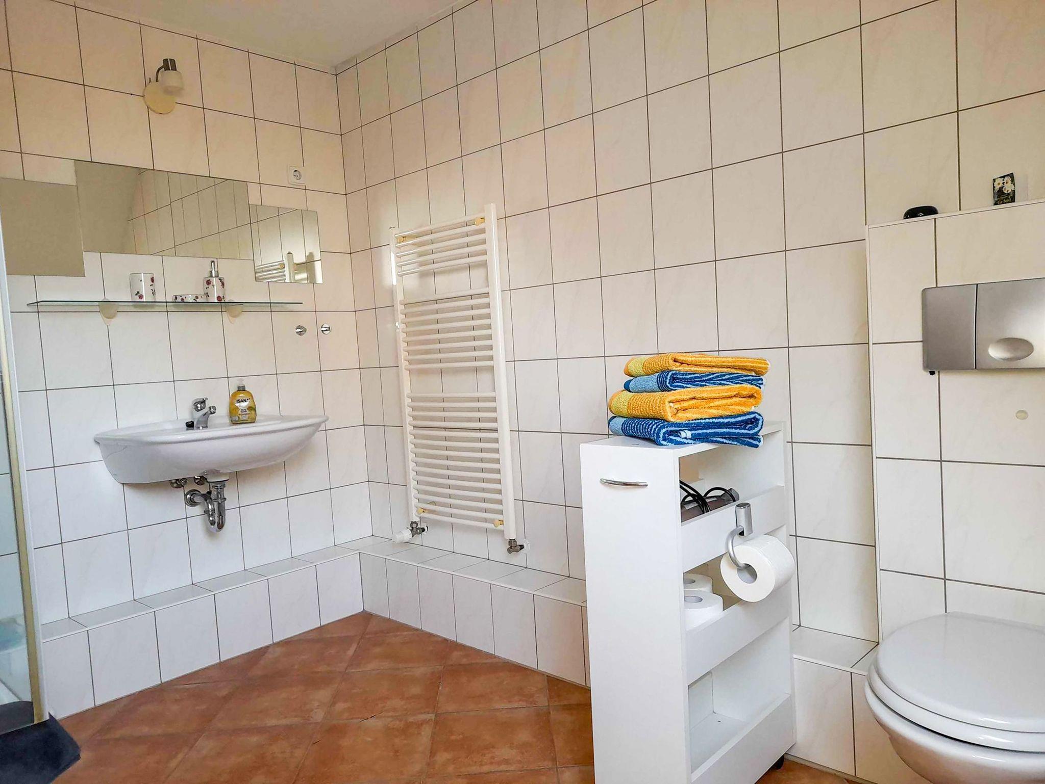 Die Ferienwohnung 1 bietet dir und deiner Familie oder Freunden auf großzügigen 75 m² ein gemütliches Zuhause auf Zeit. Sie ist perfekt für bis zu 6 Personen und befindet sich im Ober- und Dachgeschoss des Hauses, die du bequem über eine Außentreppe erreichst. Die Vermieter wohnen im Erdgeschoss und stehen dir bei Fragen gerne zur Verfügung. Das offene Wohnzimmer lädt mit einem gemütlichen Sofa, TV und einem Einzelbett (90x200) zum Entspannen ein. Ein durch einen Vorhang abgetrennter Bereich sorgt für Privatsphäre und beherbergt ein komfortables Doppelbett (160x200). Ein weiteres separates Schlafzimmer mit einem Doppelbett (180x200) bietet zusätzlichen Rückzugsraum ? ideal für Familien oder Gruppen. Von der separaten Küche, die mit Herd, Backofen, Mikrowelle, Toaster, Kühlschrank, Wasserkocher und Kaffeemaschine sowie einem Essbereich bestens ausgestattet ist, führt eine steile Treppe ins Dachgeschoss. Dort erwarten dich drei weitere Einzelbetten (90x200), die besonders für Kinder oder Jugendliche perfekt geeignet sind. Das Badezimmer mit Dusche und WC sorgt für zusätzlichen Komfort. Hier kannst du dich nach einem erlebnisreichen Tag entspannen und frisch machen.