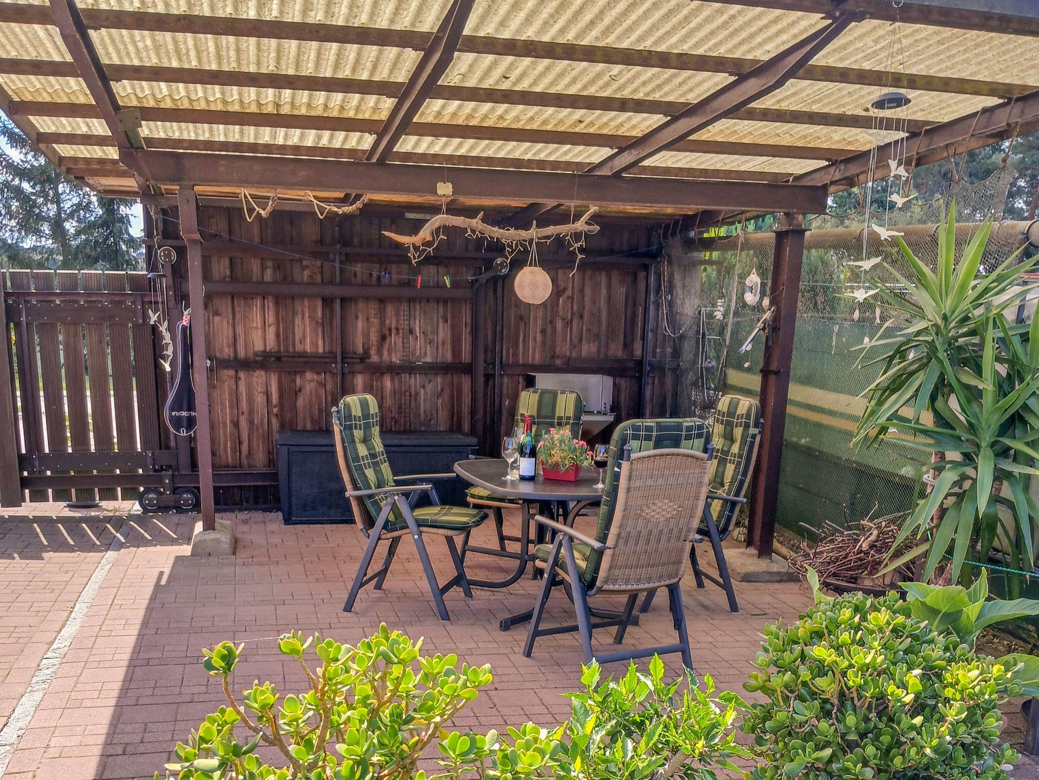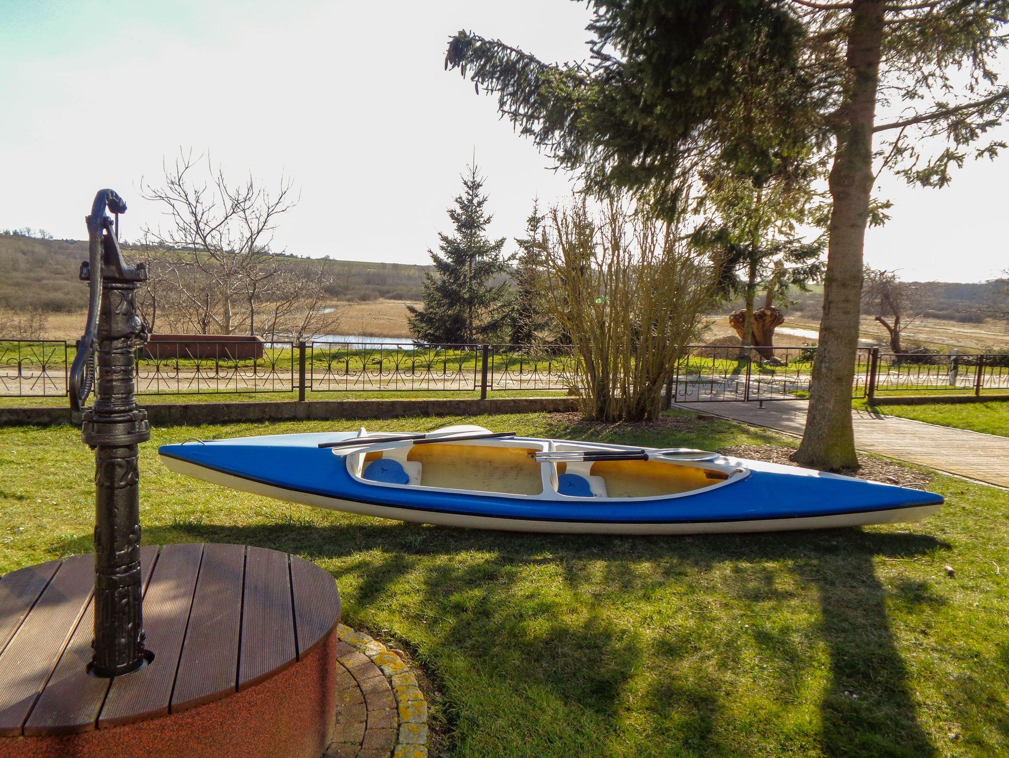 Draußen erwartet dich ein weitläufiges Grundstück mit einer eigenen Terrasse, einem Grillplatz und viel Platz zum Spielen und Entspannen. Für die kleinen Gäste gibt es einen Sandkasten, während Abenteurer das zur Verfügung stehende Paddelboot gegen eine geringe Gebühr ausleihen können. Vom nahegelegenen Steg, der nur ca. 300 Meter entfernt ist, kannst du das Boot bequem zu Wasser lassen und die malerische Recknitz erkunden. Ein Parkplatz ist direkt am Haus vorhanden und Fahrräder können sicher abgeschlossen werden.