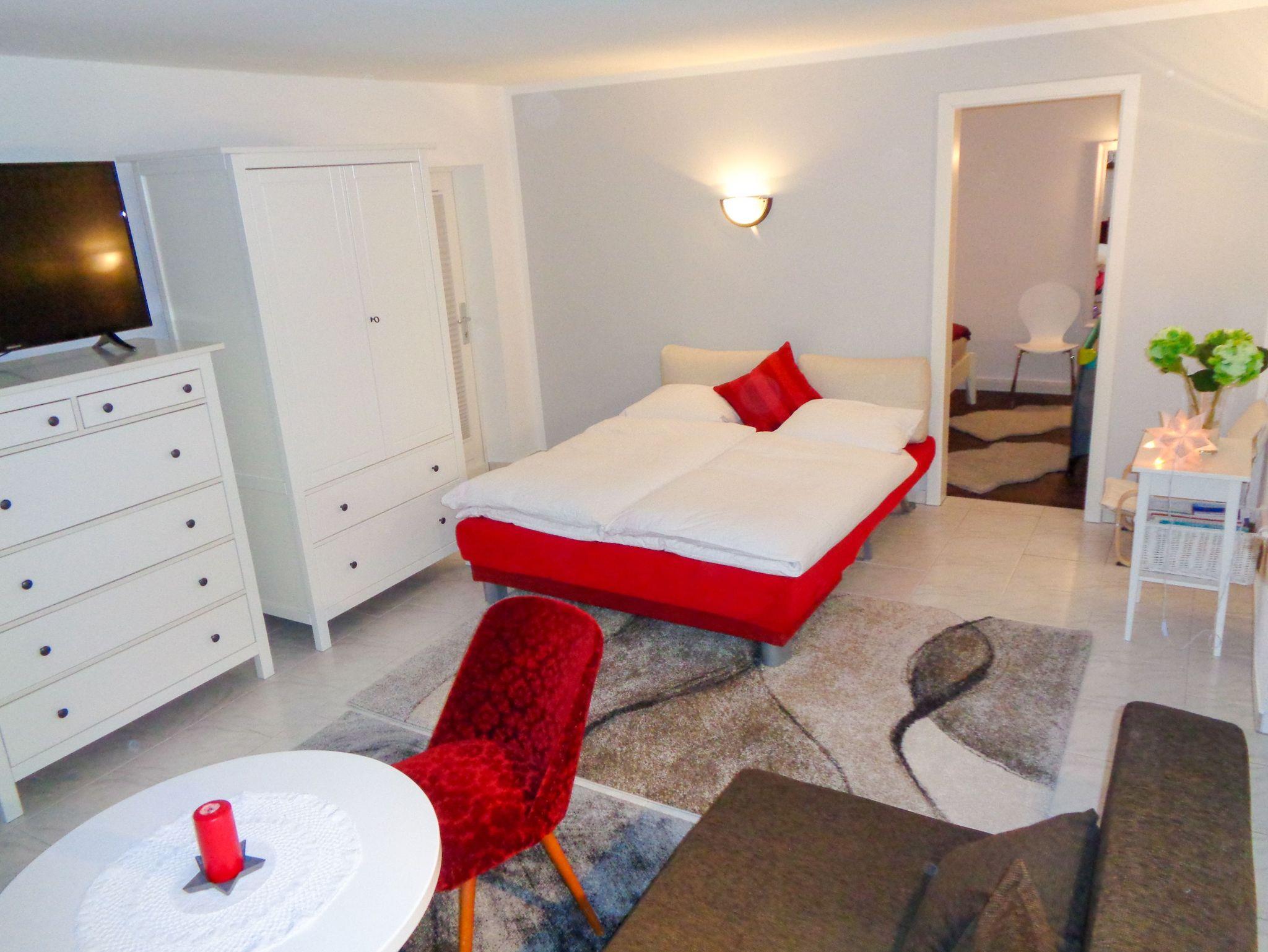 Die Ferienwohnung Am Recknitzhang bietet dir eine ruhige und naturnahe Auszeit in Ahrenshagen-Daskow. Sie befindet sich im Souterrain eines Einfamilienhauses und ist ideal für bis zu 4 Personen geeignet. Der offene Wohnbereich kombiniert Gemütlichkeit und Funktionalität: ein einladendes Wohnzimmer mit Sofa und TV geht fließend in die voll ausgestattete Küche. Das Schlafzimmer ist mit einem komfortablen Doppelbett eingerichtet und das Bad verfügt über eine Dusche und WC.