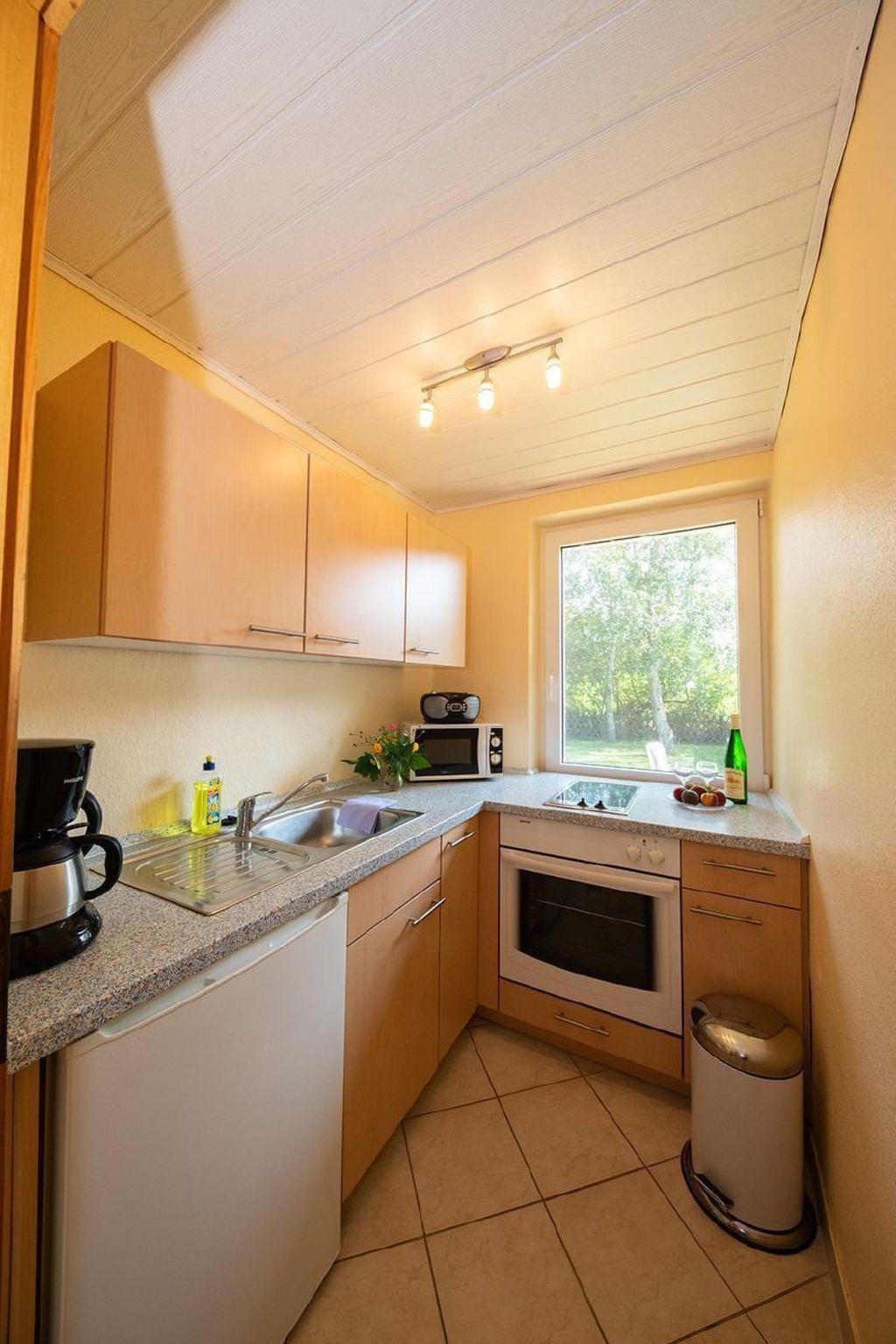 Im Inneren erwartet Sie eine gemütliche Glasveranda mit einer Essecke, die Ihnen einen herrlichen Ausblick auf unseren weitläufigen Garten und die typischen Windflüchter der Region bietet. Die Wohnung ist speziell dafür ausgestattet, um Ihnen vollkommene Entspannung und Unabhängigkeit zu gewährleisten. Für zusätzlichen Komfort sorgen der Wohn-/Schlafbereich mit Sat-TV, Essecke und einem Ehebett, ein separates Schlafzimmer mit einem Etagenbett sowie eine gut ausgestattete Küche mit Kühlschrank, Gefrierfach und Wasserkocher.