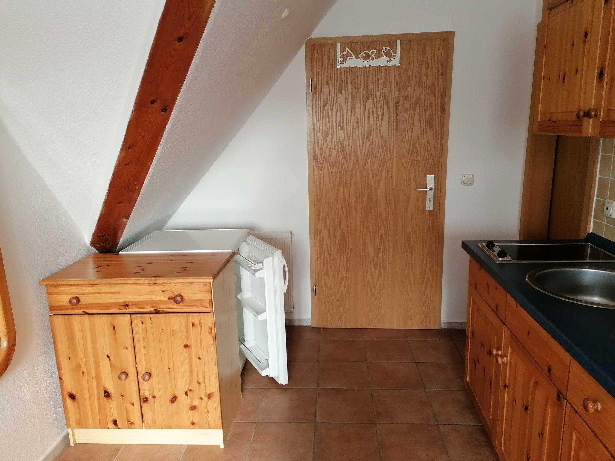 Kleine Ferienwohnung im Obergeschoss in einem schönen Reetdachhaus. Sie wohnen zentral und strandnah, aber trotzdem ruhig. Die Wohnung verfügt über eine Wohnküche, ein separates Schlafzimmer mit Doppelbett sowie einem Tageslichtbad mit Dusche. In der Wohnküche finden Sie neben einer gemütlichen Couch auch einen großzügigen Essplatz. Die Küche ist ausgestattet mit einem Zwei-Platten-Cerankochfeld, einem Kühlschrank (mit Eisfach) sowie Wasserkocher, Toaster und Kaffeemaschine. Das Tageslichtbad verfügt über eine Dusche / WC.Zur Wohnung gehört ein großer Garten, der gemeinschaftlich mit anderen Gästen genutzt werden kann. Ein Parkplatz ist ebenfalls vorhanden. Der Eingang zur Wohnung führt über eine Treppe. Die Bettwäsche ist im Preis inklusive. Handtücher müssen mitgebracht werden oder können kostenpflichtig dazu gebucht werden.