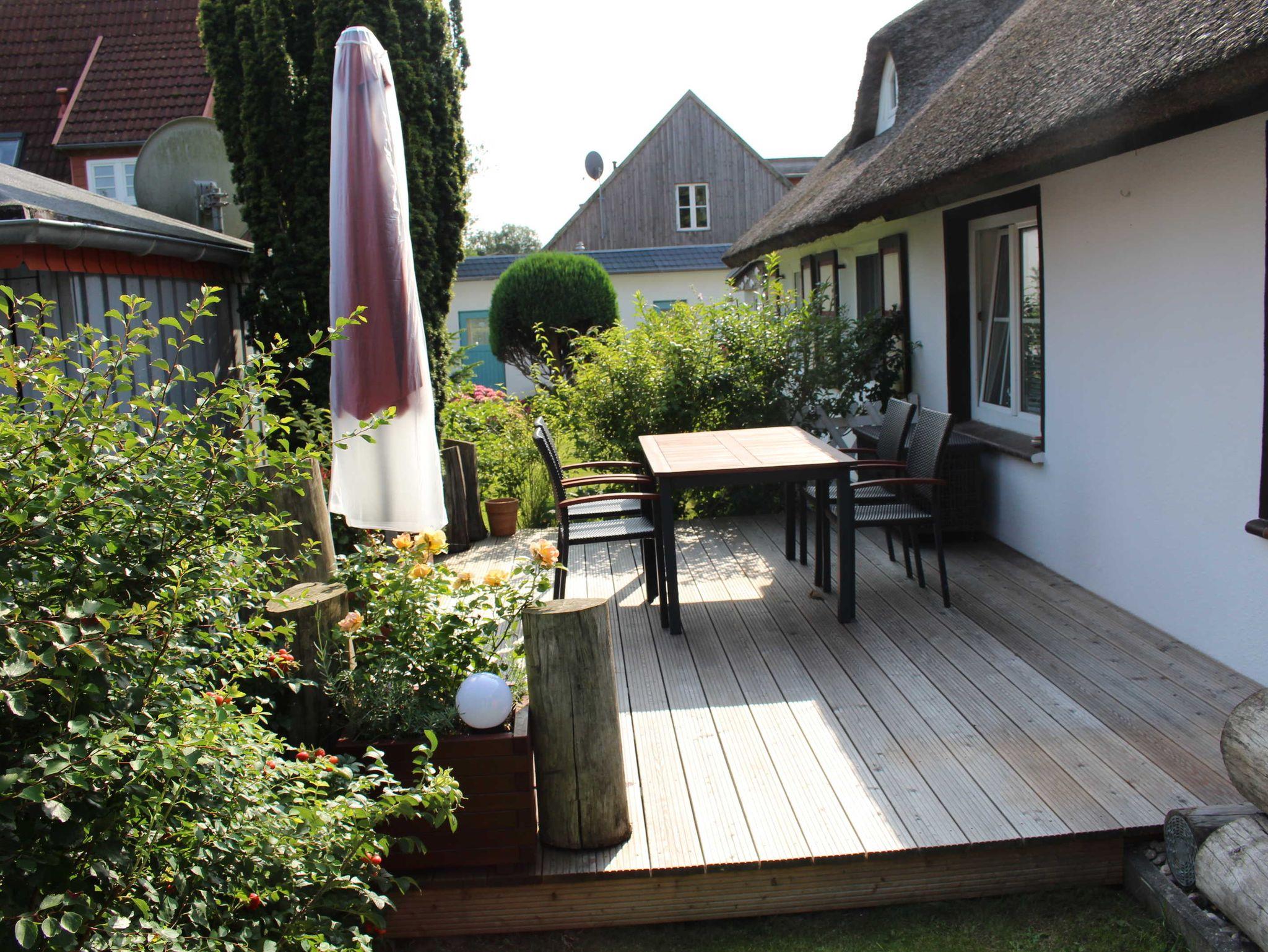 Die ca. 40 qm große Wohnung befindet sich im Erdgeschoss eines traditionellen Rohrdachhauses. Die Wohnung Strandgeflüster verfügt über ein Wohnzimmer mit Schlafcouch (Aufbettung für max. 2 Kinder), einer separaten, voll ausgestatteten Küche, einem Schlafzimmer mit Doppelbett und genügend Stauraum. Das Badezimmer ist mit einer Dusche ausgestattet. Weiterhin gehört zur Wohnung eine Terrasse. Für Ihre Unterhaltung stehen Sat-TV mit DVD Player, Radio , WLAN, Bücher und Gesellschaftsspiele zur Verfügung.