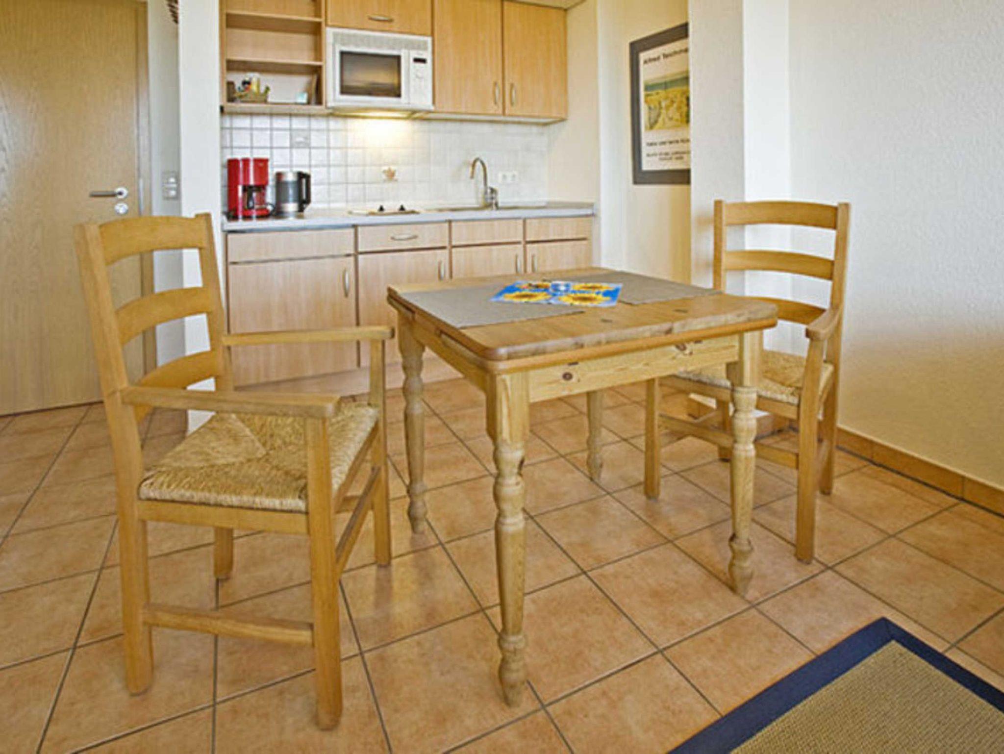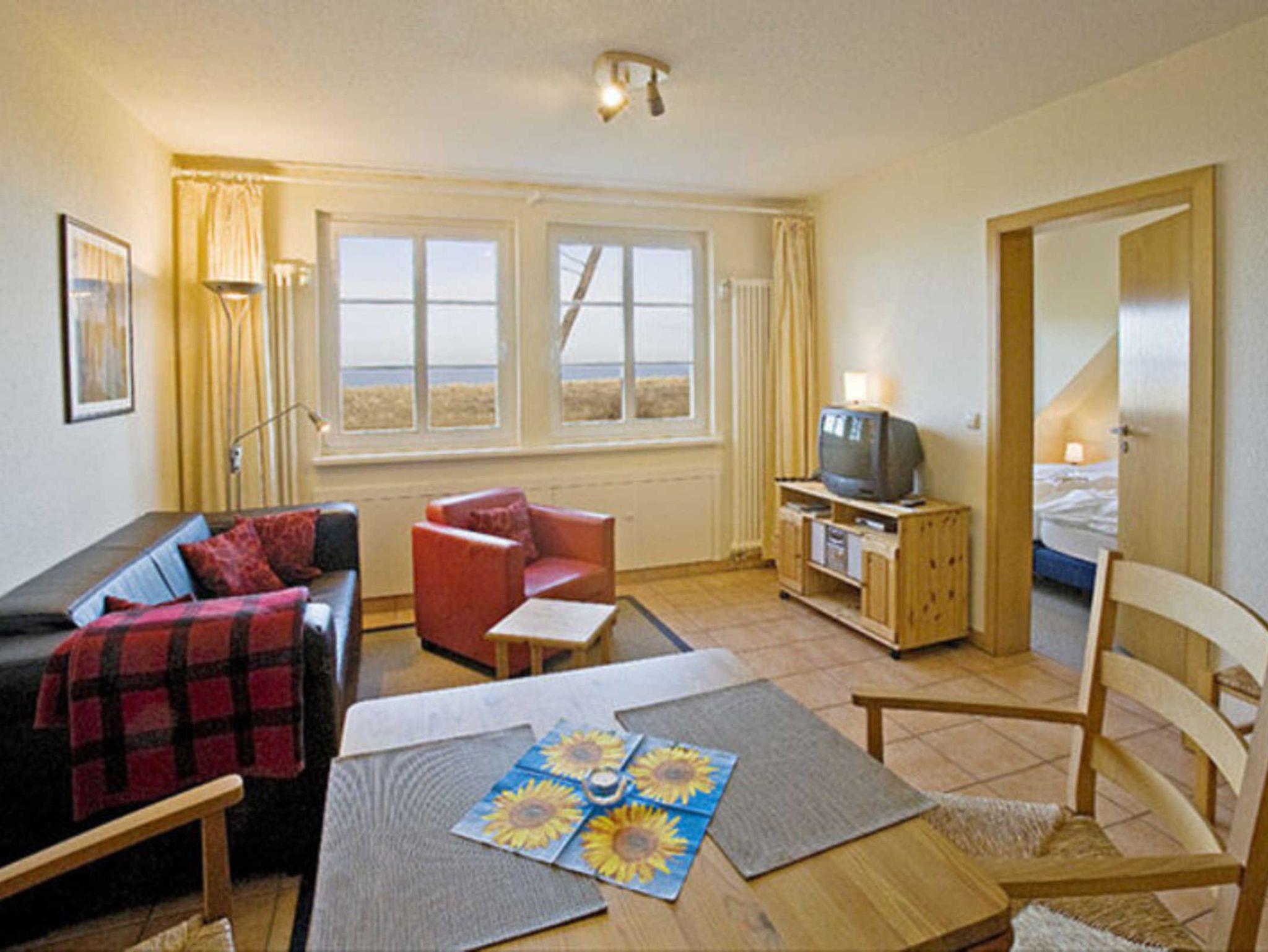 Die Wohnung Ruth für 2 Personen im Obergeschoß in der Mitte des Hauses ist geprägt von dem gemütlichen Wohnzimmer mit Küchenzeile und dem Schlafzimmer, aus denen Sie die Ostsee und eindrucksvolle Sonnenuntergänge erleben können. Das innenliegende Bad hat eine Badewanne.
