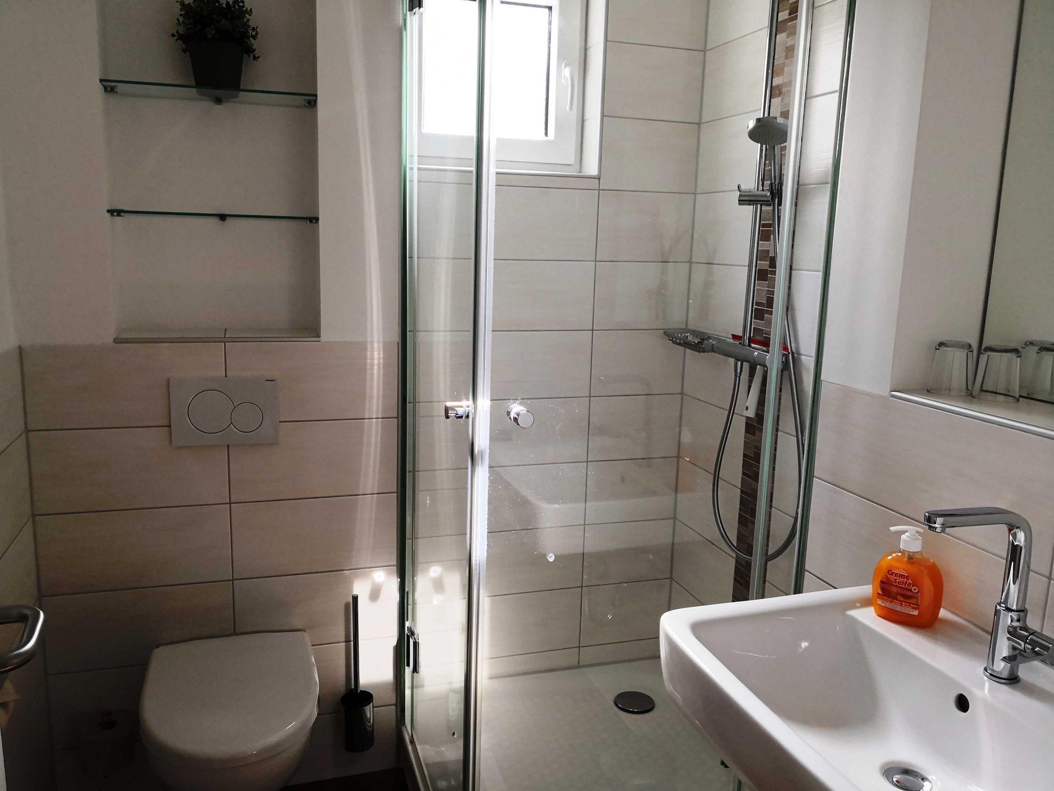 Toaster, TV, Küchenzeile, Kühlschrank, Dusche, Heizung, Kaffeemaschine,