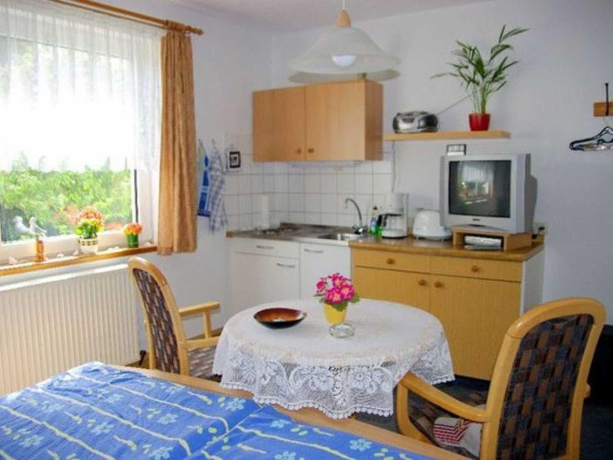 Das Ferienzimmer befindet sich im Erdgeschoss. Es ist ausgestattet mit einer Pantry-Küche und Dusche / WC befinden sich auf dem Flur in Alleinnutzung.