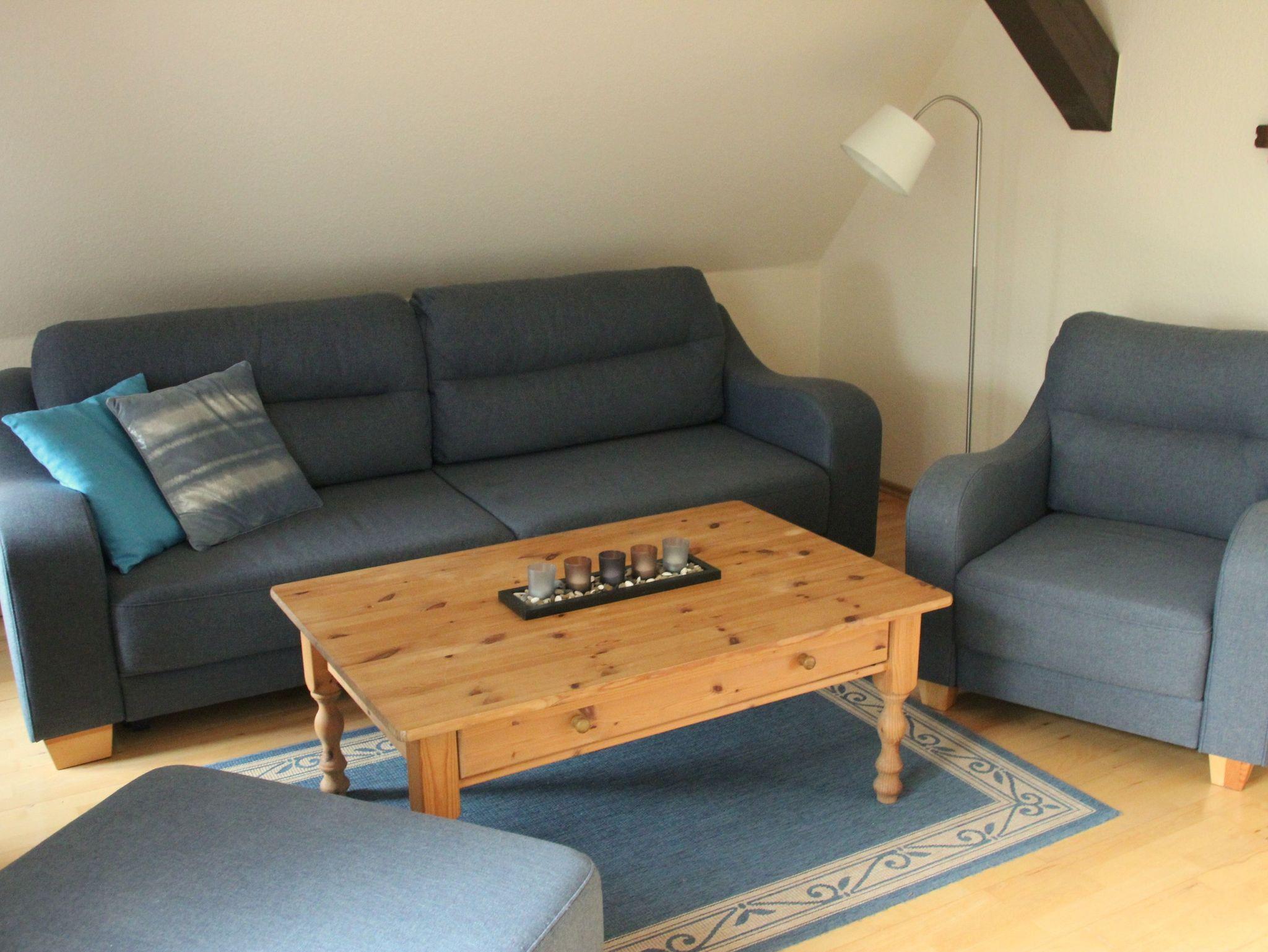 Treten Sie ein in ein gemütliches Ambiente, das durch das lichtdurchflutete Wohnzimmer geprägt ist. Hier erwartet Sie eine einladende Eckcouch, die bei Bedarf in ein zusätzliches Bett für eine Person verwandelt werden kann. Eine Aufbettung ist gegen einen kleinen Aufpreis möglich. Verbringen Sie gesellige Abende vor dem Flachbild-TV oder lassen Sie den Tag bei einem Film auf dem DVD-Player ausklingen. Das Schlafzimmer, ausgestattet mit einem komfortablen Doppelbett, verspricht erholsame Nächte und süße Träume.