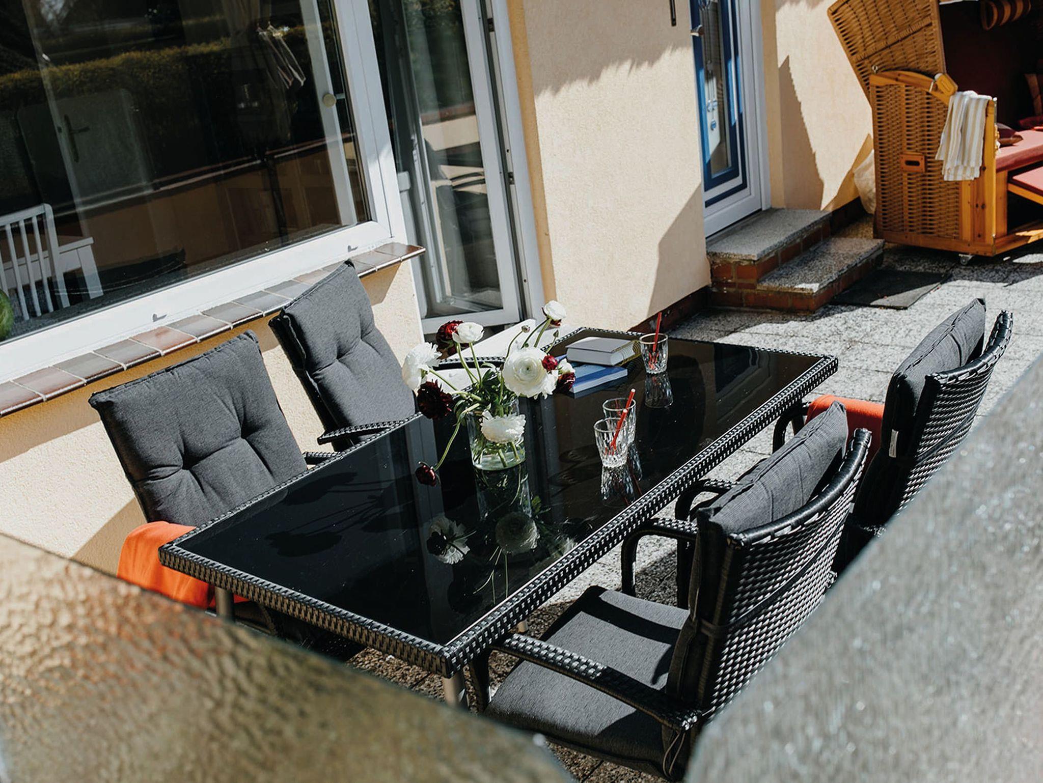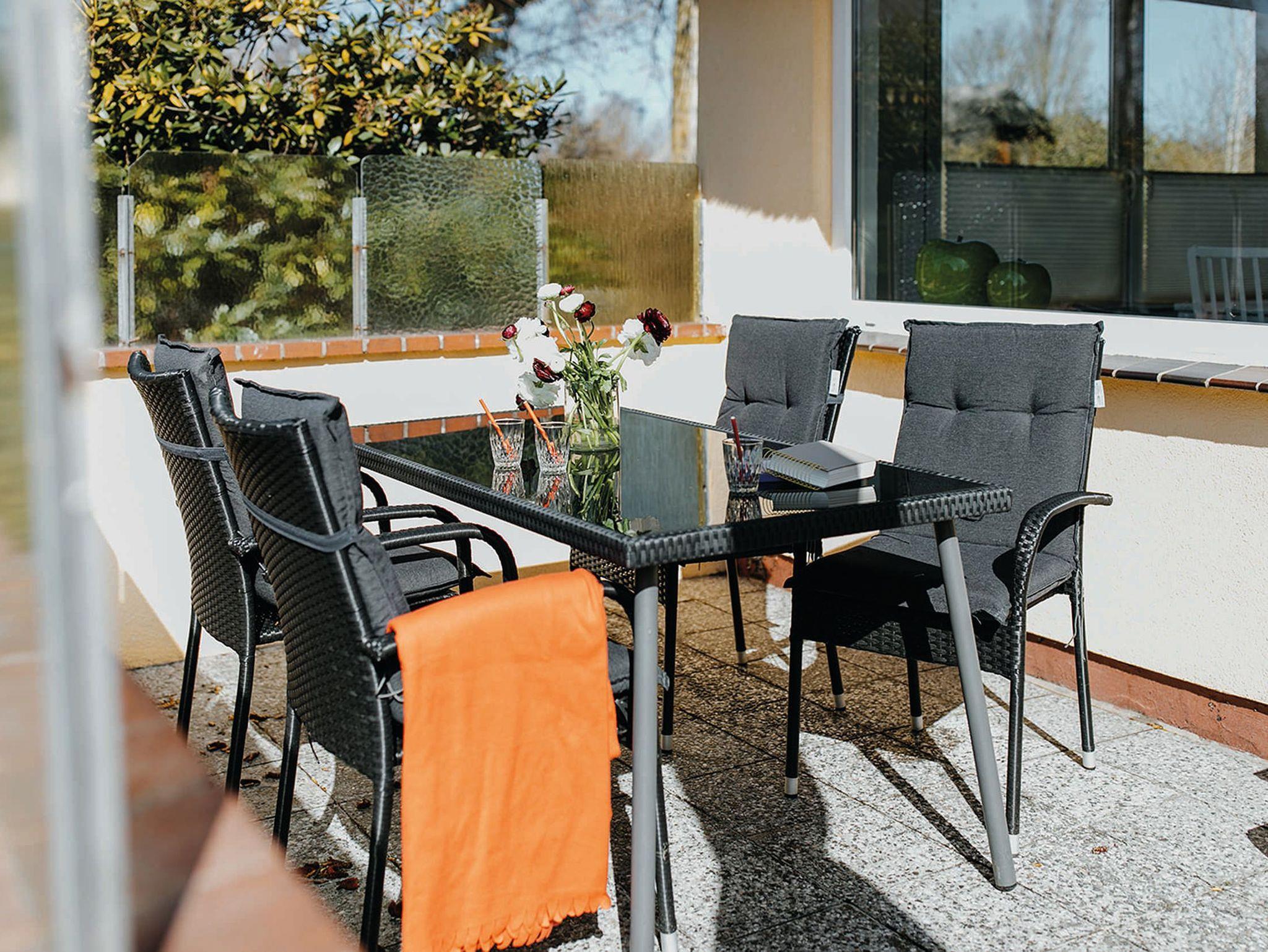 Sie genießen auf der Südterrasse die Nachmittagssonne , auf einer Sonnenliege oder klassisch am Gartentisch unter dem Sonnenschirm.