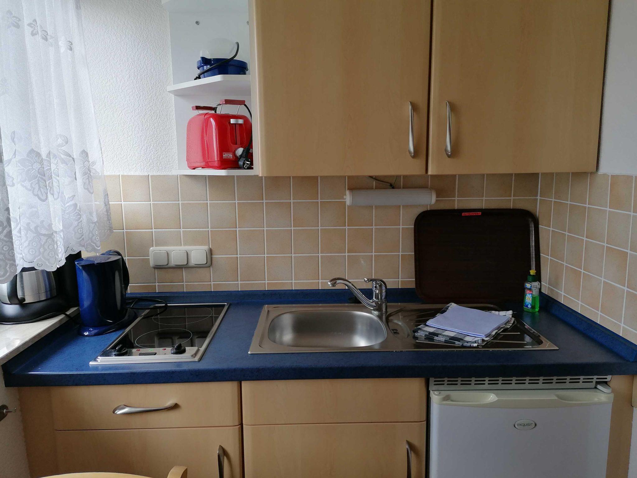 Kleines Appartement im Obergeschoss in einem schönen Reetdachhaus. Sie wohnen zentral und strandnah, aber trotzdem ruhig. Das Appartement verfügt über einen kombinierten Wohn- und Schlafraum. Im Schlafbereich befinden sich ein Doppelbett sowie eine Sitzmöglichkeit. Die kleine Pantryküche befindet sich im Eingangsbereich des Appartements und verfügt über ein Zwei-Platten-Cerankochfeld, einen Kühlschrank (ohne Eisfach) sowie Wasserkocher, Toaster und Kaffeemaschine. Ein Essplatz im Appartement ist in der Küche vorhanden. Das innenliegende Bad verfügt über eine Dusche / WC. Zum Appartement gehört ein großer Garten, der gemeinschaftlich mit anderen Gästen genutzt werden kann. Ein Parkplatz ist ebenfalls vorhanden. Der Eingang zum Appartement führt über eine Treppe. Die Bettwäsche ist im Preis inklusive. Handtücher müssen mitgebracht werden oder können kostenpflichtig dazu gebucht werden.