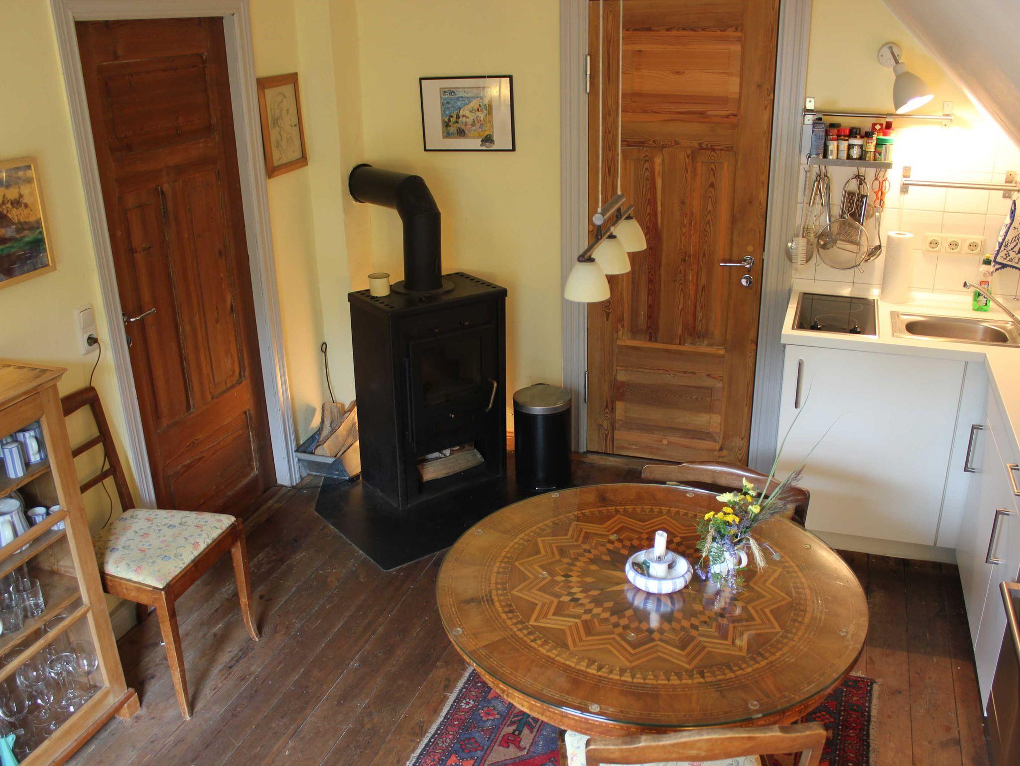 Charmantes Apartment Jutting in Ahrenshoop, nah am Bodden mit Terrasse, Kaminofen und WLAN für erholsamen Urlaub.