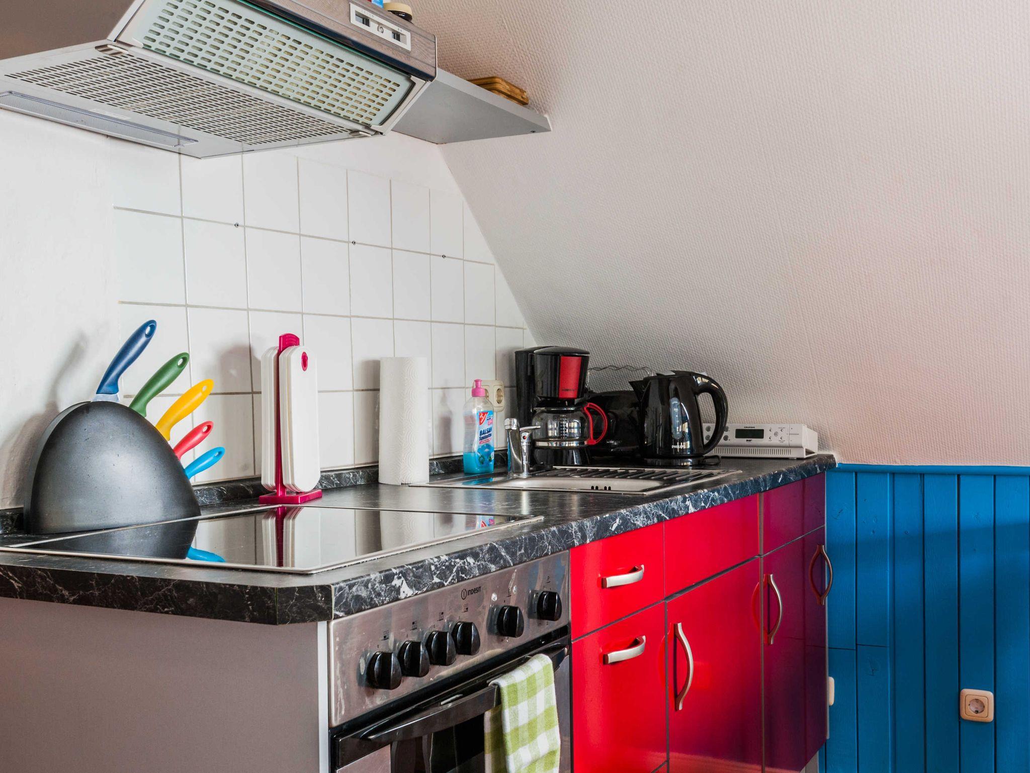 Die lichtdurchflutete offen gestaltete Dachgeschoss-Wohnung ist gemütlich eingerichtet, so dass Sie sich vom ersten Urlaubstag an wohlfühlen können. Hier gibt es ein Schlafzimmer mit Doppelbett und einer Schlafnische für ein kleineres Kind (max. 6 Jahre). Der Wohnbereich ist mit einer Schlafcouch und einer offenen Küche mit Essecke ausgestattet. Das Badezimmer verfügt über eine Dusche. Auch zu dieser Wohnung gehört eine Terrasse.