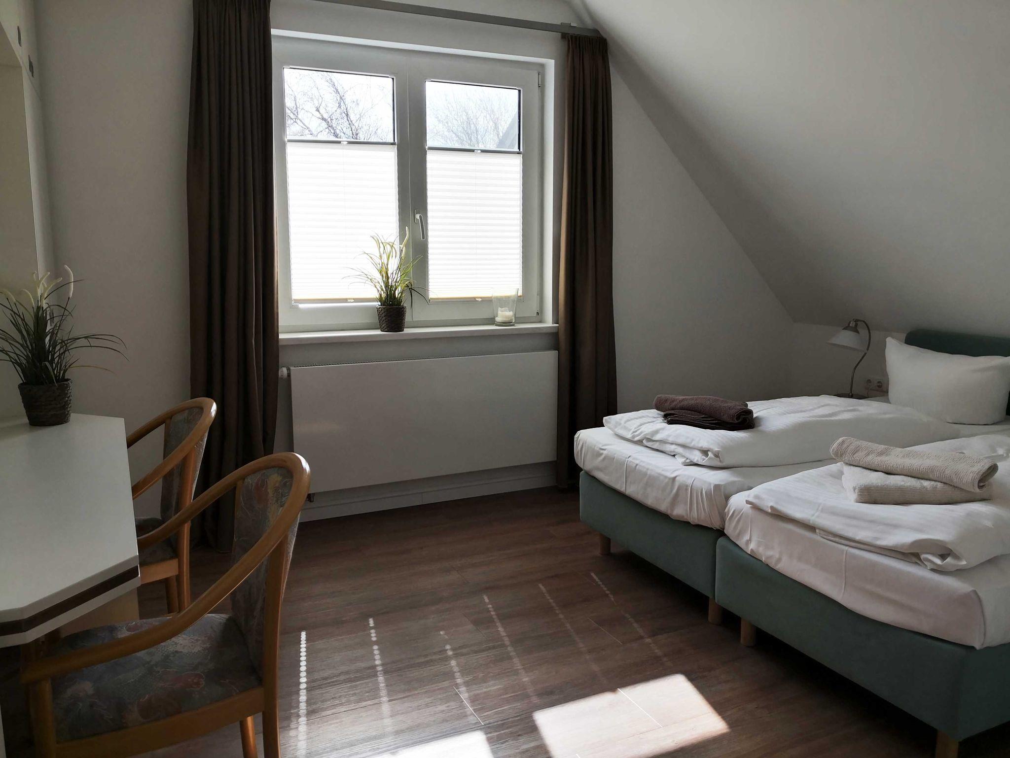 Alle Zimmer sind Nichtraucherzimmer und liegen ruhig, aber trotzdem zentral und direkt hinter den Dünen. Zu jedem Zimmer gehört ein PKW-Stellplatz am Objekt.