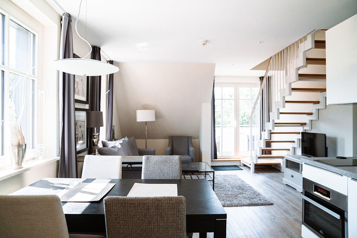 Die 55 m² große Ferienwohnung Meerblick ist geschmackvoll und modern eingerichtet – Wohlfühlfaktor inklusive. Die Ostsee ist gleich um die Ecke, genauso wie verschiedene kleine Geschäfte, Cafés und Galerien. Auf Wunsch kannst du das Frühstücksrestaurant #fraukorn des Hotel SEEZEICHEN gegen einen Aufpreis nutzen.