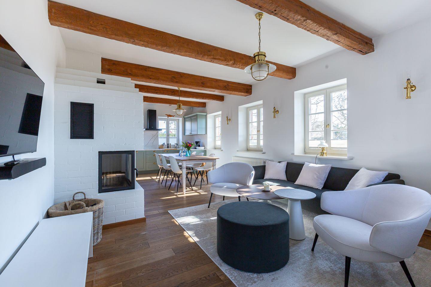 Dieses liebevoll modernisierte Kapitänshaus verbindet historischen Charakter mit zeitgemäßem Wohnkomfort. Alte Relikte wie freigelegte Balken und charmante Details erinnern an die Geschichte des Hauses und schaffen eine behagliche Atmosphäre. Kombiniert mit moderner Einrichtung und lichtdurchfluteten Räumen ist hier ein besonderer Wohlfühlort entstanden.