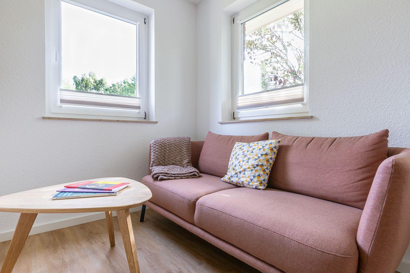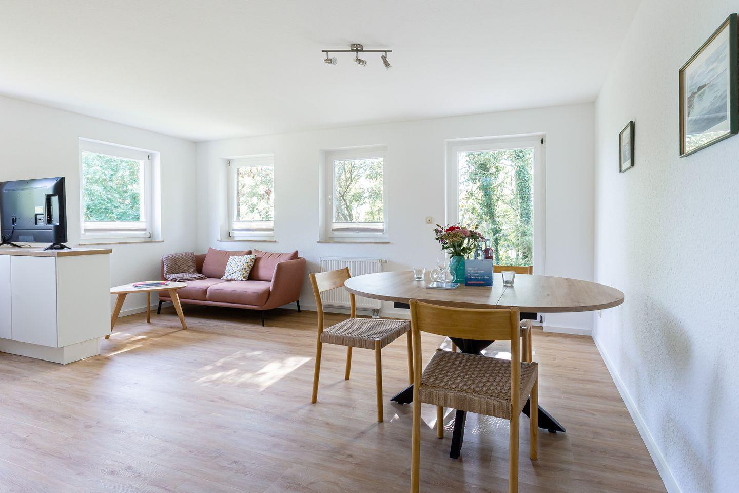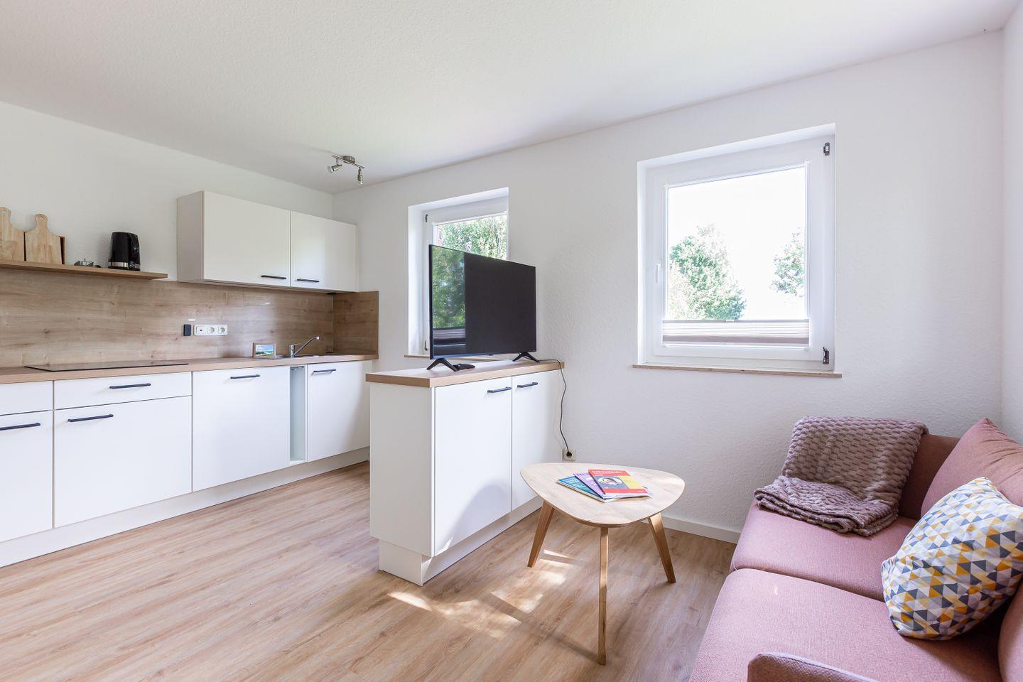 Die Ferienwohnung befindet sich im Erdgeschoss eines neu sanierten Hauses mit insgesamt sechs Ferienobjekten. Modern, klar und mit Blick fürs Wesentliche gestaltet, bietet die Wohnung eine angenehme Mischung aus zeitgemäßem Komfort und entspannter Zurückhaltung – ideal für alle, die Erholung suchen. Innen erwartet dich ein helles, luftiges Ambiente, ein gemütliches Schlafzimmer, ein modernes Bad und ein einladender Wohn- und Küchenbereich, der Kochen, Lesen oder einfach mal gar nichts tun zum Genuss macht.