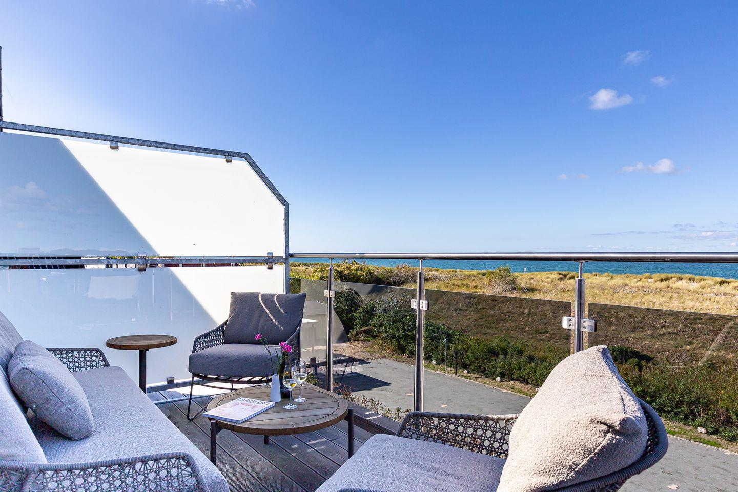 Moderne Ferienwohnung mit Meerblick, Sauna und Balkon direkt hinter dem Deich in Ahrenshoop.