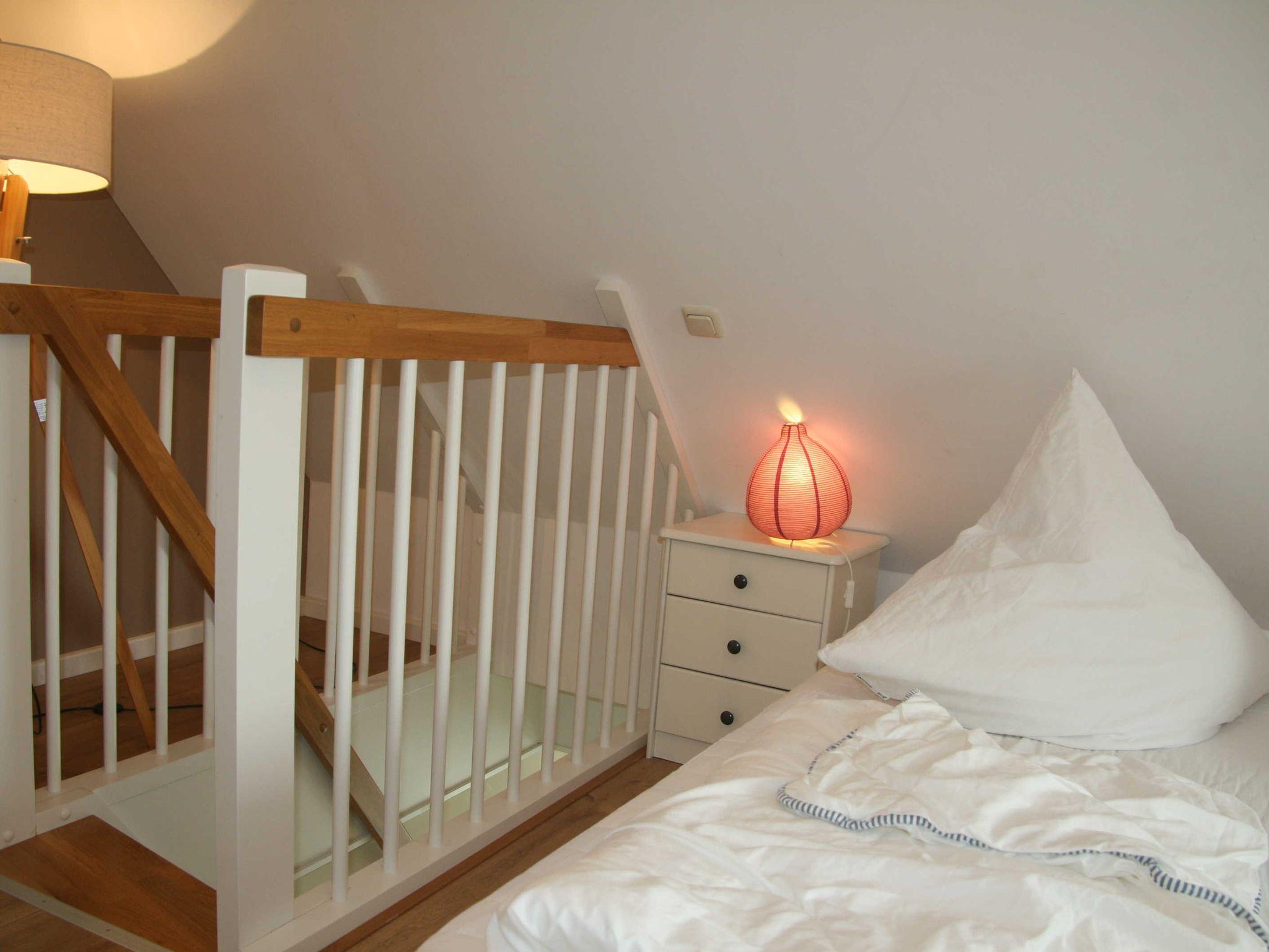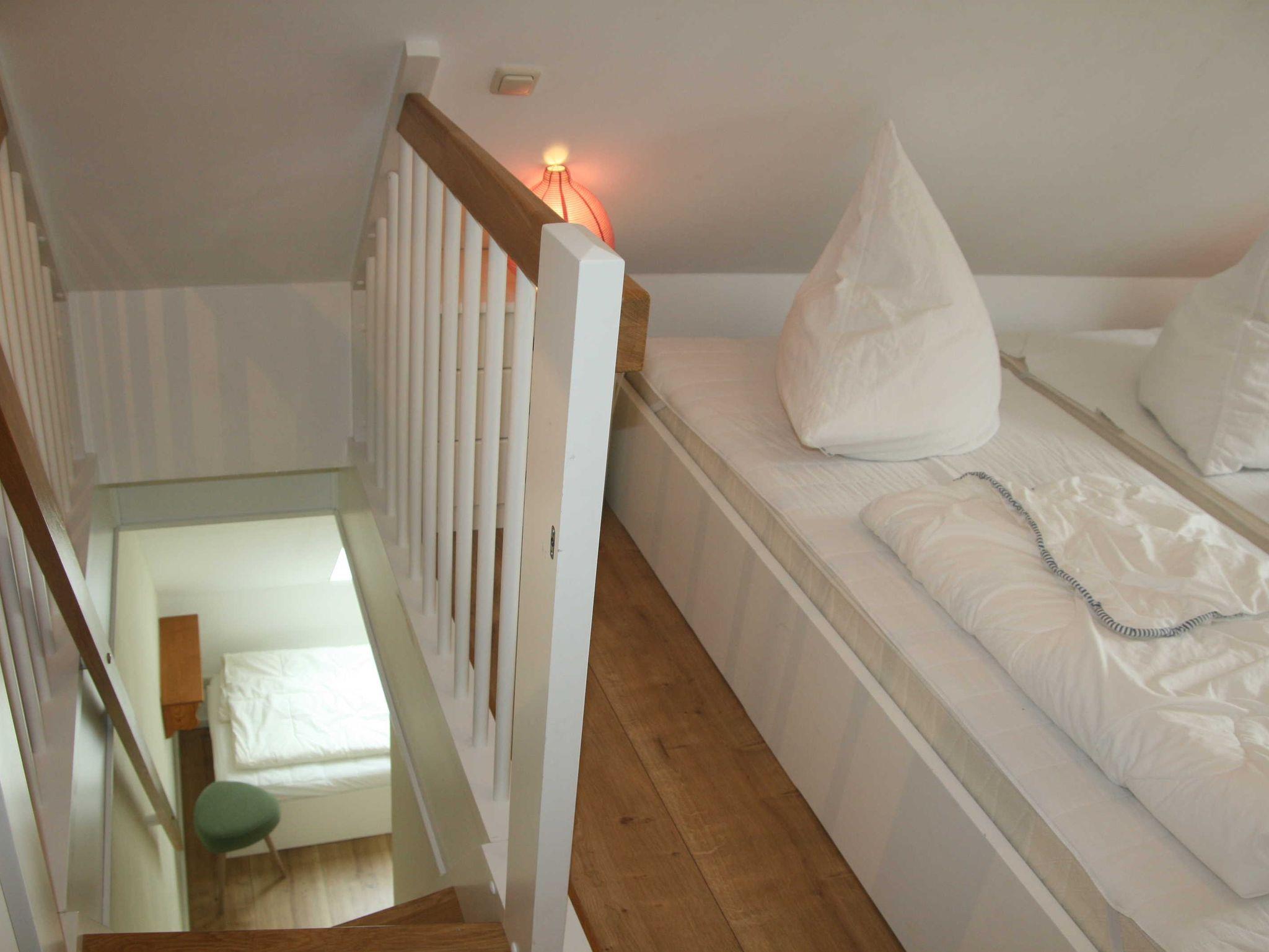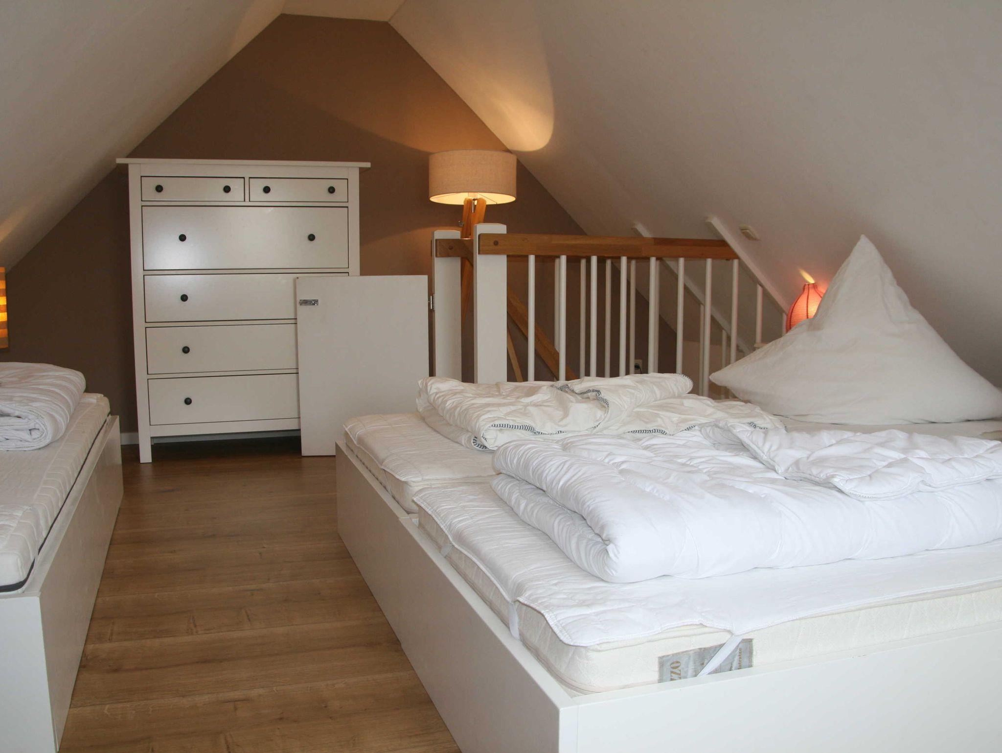 • Schlafgalerie mit 3 Einzelbetten (beliebig auch als Doppelbett stellbar) im Dachgeschoss, Babybett stellbar