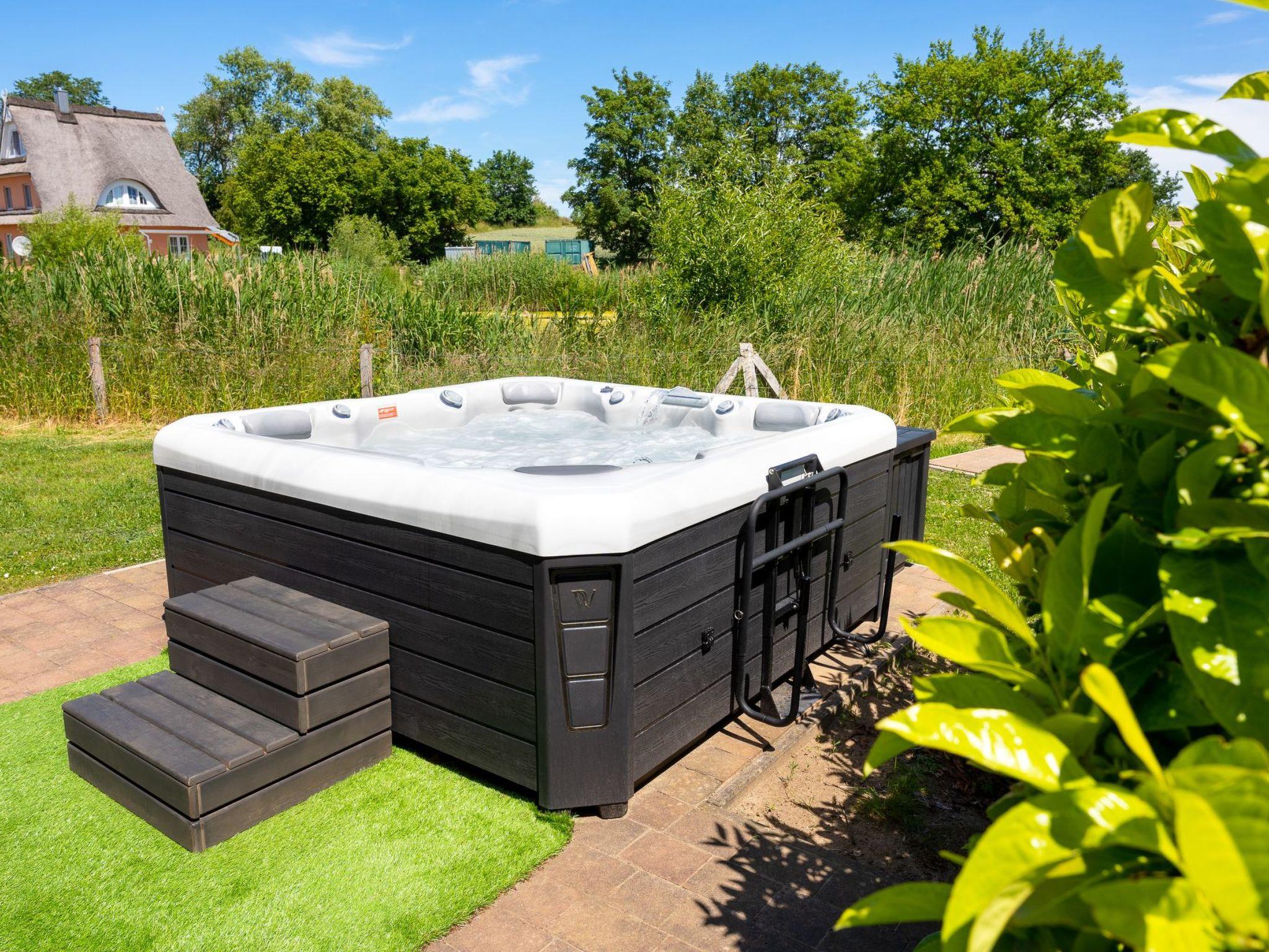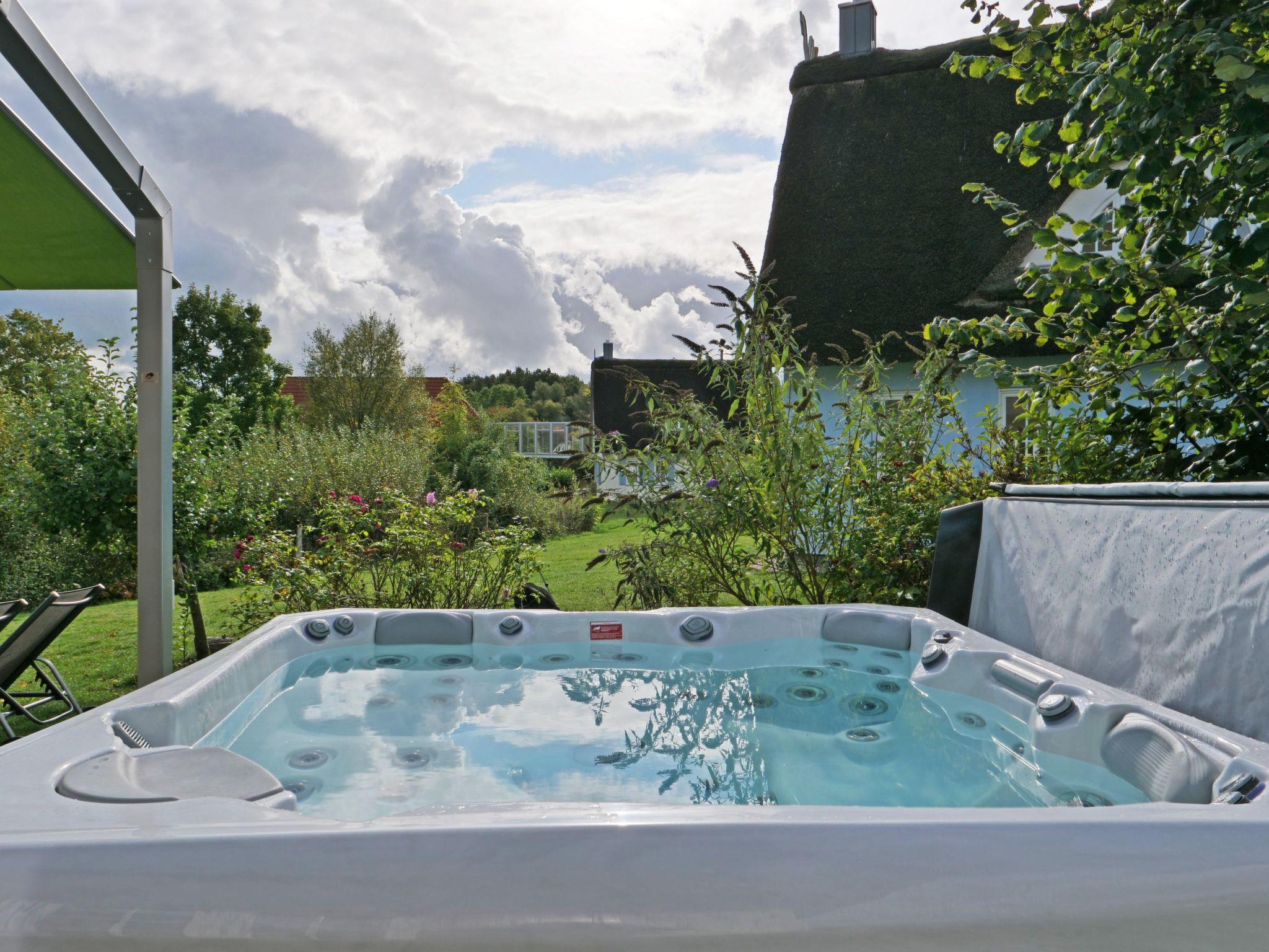 Erleben Sie das exklusive Reetdachhaus Jaguar mit Sauna, Outdoorpool und Whirlpool in ruhiger Lage nahe dem Strand.