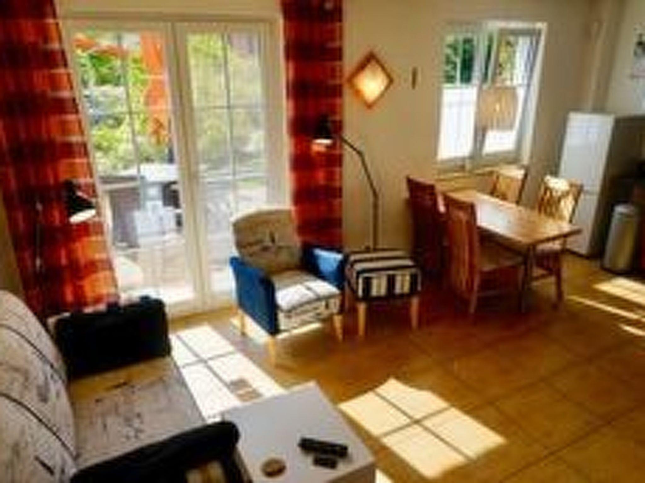 Dieses Haus verfügt über einen Tisch mit 4 Sitzmöglichkeiten, welcher durch einen Sonnenschirm vor der Sonne geschützt wird. Desweitern befindet sich auf dem Grundstück ein Strandkorb. Das überdachte Außenbecken (Nutzung von April bis Anfang November), welches sich in unmittelbarer Nähe befindet, kann von allen Gästen genutzt werden, dass gleiche gilt für die Sauna.