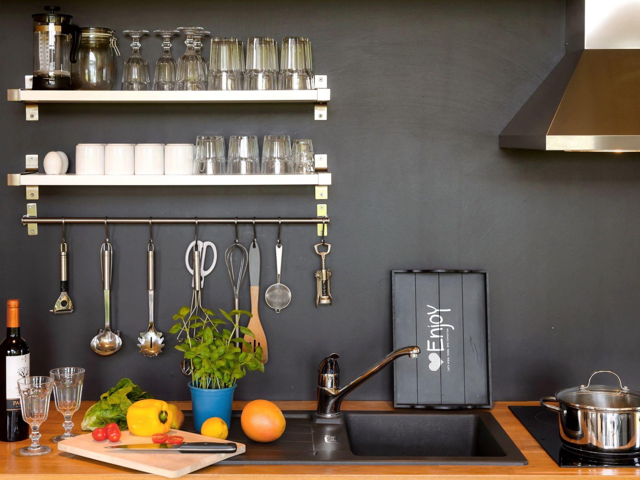 Im Inneren des Hauses erwartet Sie ein individueller und funktionaler Grundriss, der eine praktische und zugleich behagliche Raumaufteilung bietet. Die maßangefertigten Einbaumöbel verbreiten nicht nur in den Schlafräumen eine wohlige Atmosphäre. Das Herzstück bildet sicherlich die offene Wohnküche, von der aus man durch die große Glasfront direkt in den üppig angelegten Garten blicken kann. Dank der Fußbodenheizung und einer ökologischen Erdwärmepumpe bleiben Ihre Füße auch in den kälteren Monaten warm, und die großzügige Sauna, die von allen vier Ferienhäusern geteilt wird, lädt zum Entspannen ein.