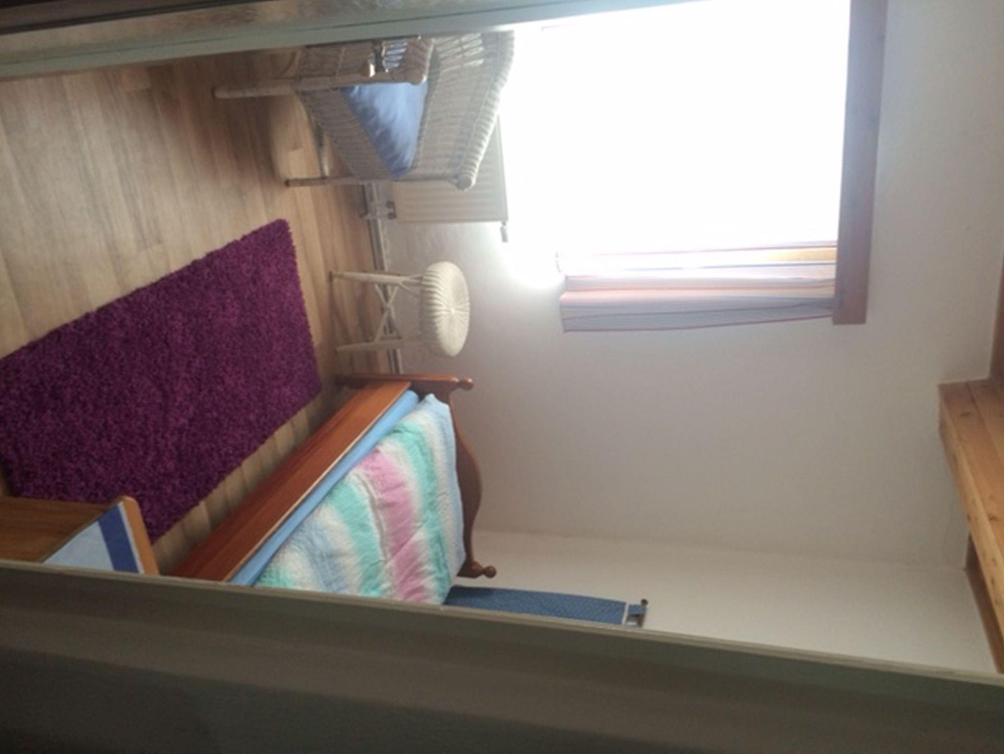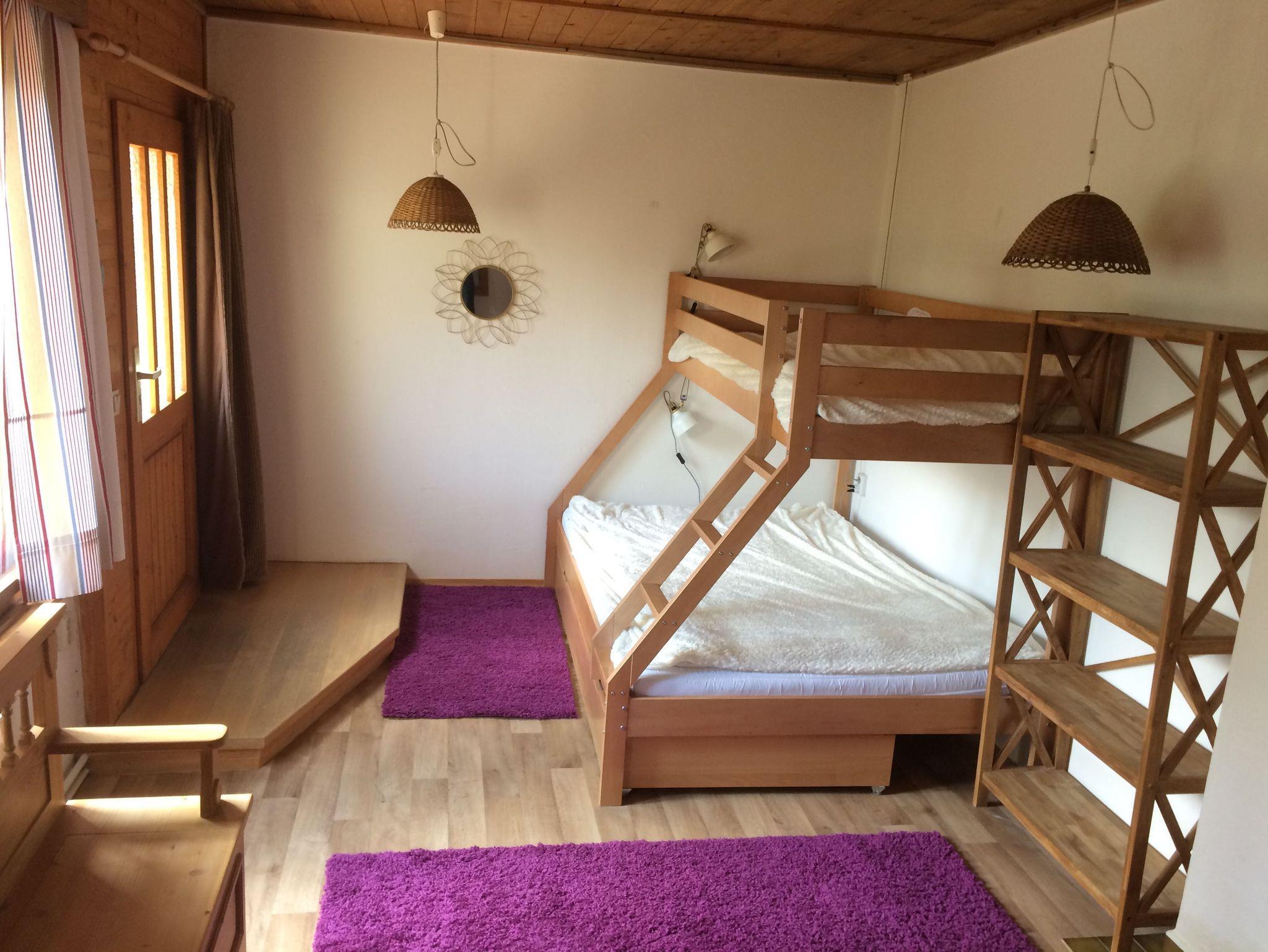 Das Ferienhaus für bis zu 5 Personen hat einen Wohnraum mit TV und Küchenzeile, Duschbad mit WC, 2 separate Schlafzimmer und ein zusätzlicher Schlafraum mit Etagenbett und zusätzlichem Zugang zum Garten.