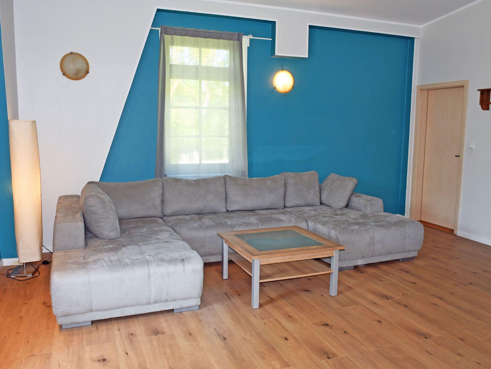 Die große Ferienwohnung Saßnitz erstreckt sich über 2 Etagen. Sie verfügt über 4 separate Schlafzimmer, einen großen Kochbereich, 2 Badezimmer und ein großes Wohnzimmer. Hervorhebens Wert ist der herrliche Ausblick in die große parkähnliche Anlage mit viel Platz zum Entspannen und spielen.
