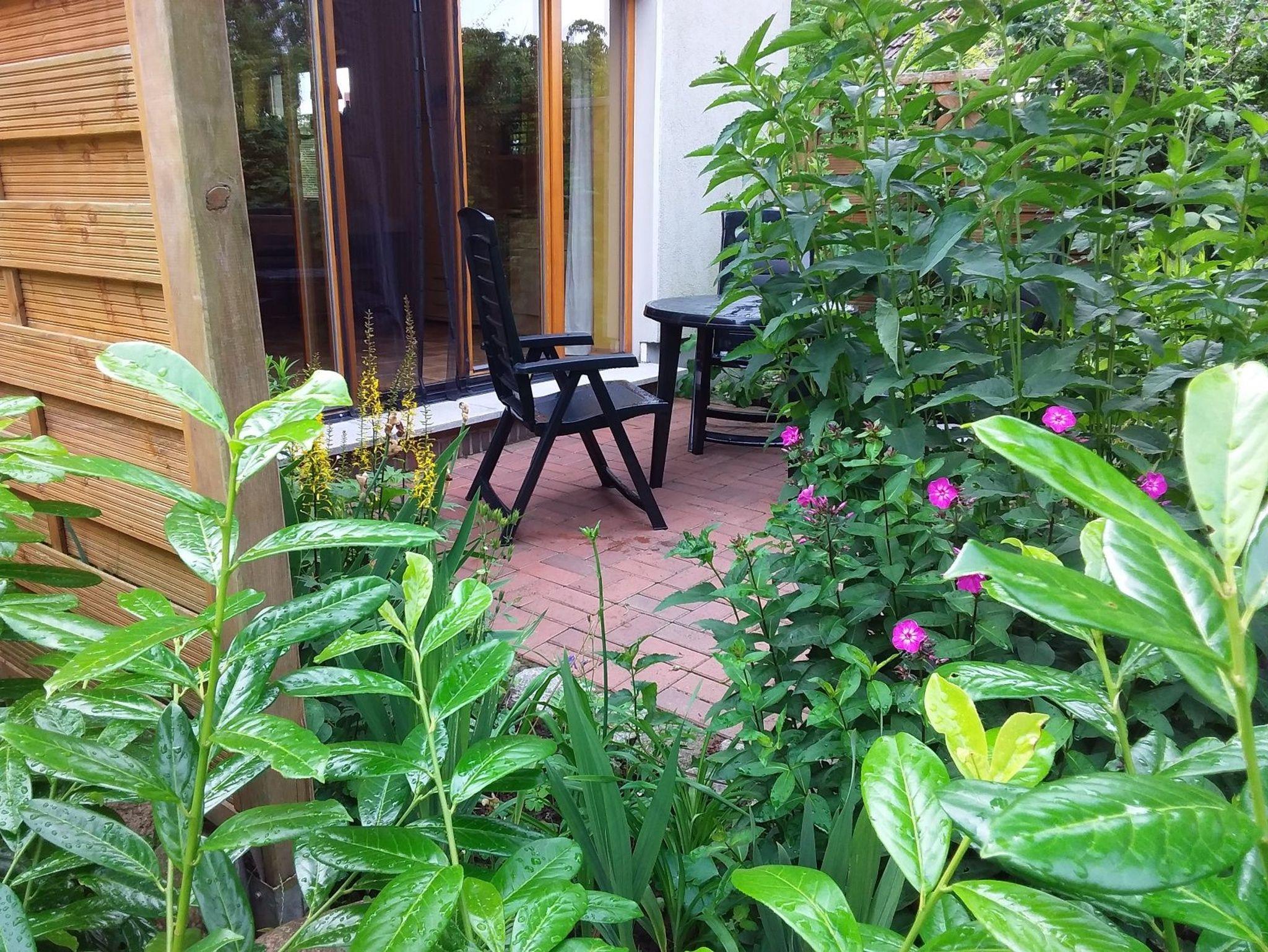 Das Ferienhaus (Maisonette, keine geschlossenen Räume) mit kleiner, möblierter Terrasse ist am Rande des alten Ortskernes von Altefähr gelegen. Es befindet sich innerhalb einer ruhigen Einfamilienhaussiedlung, auf dem ca. 1.200qm großen Grundstück des Vermieters.