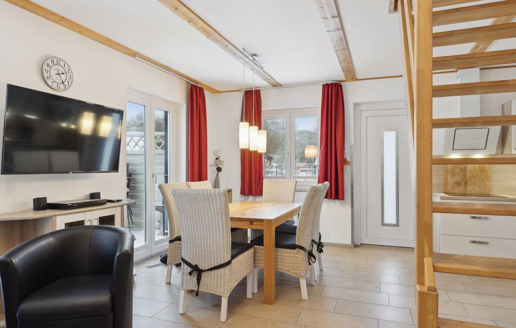 Dieses geräumige und gemütliche Ferienhaus erstreckt sich über zwei Etagen. Im Erdgeschoss liegt das helle und geschmackvoll eingerichtete Wohn- und Esszimmer mit gemütlicher Sofaecke und moderner Küchenzeile. Kommen Sie hier zusammen, um zu kochen, zu essen und zu spielen. Hier wird Ihr natürlicher Treffpunkt sein, bevor Sie zu Ihren Aktivitäten und Ausflügen auf der Insel starten. Auch in der kalten Jahreszeit können Sie hier herrlich entspannen, wenn der Bio-Ethanol-Kamin für eine besonders gemütlich Atmosphäre sorgt.