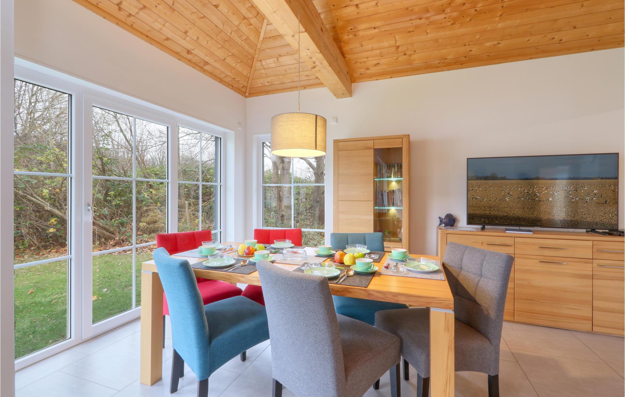 Dieser schöne Bungalow ist eine Ruheoase für Ihre ganze Familie. Kommen Sie an und fühlen Sie sich direkt pudelwohl. Dank der bodentiefen Panoramafenster ist der großzügige Wohn- und Essbereich in natürliches Licht gehüllt. Die hochwertige Ausstattung samt modernem Home-Theater sowie der gemütliche Kaminofen werden dafür sorgen, dass Sie sich hier zu jeder Jahreszeit sofort wohlfühlen werden. In der Küche werden Sie alle Annehmlichkeiten finden, die das Herz begehrt, so dass einem Kochabend nichts im Wege steht.