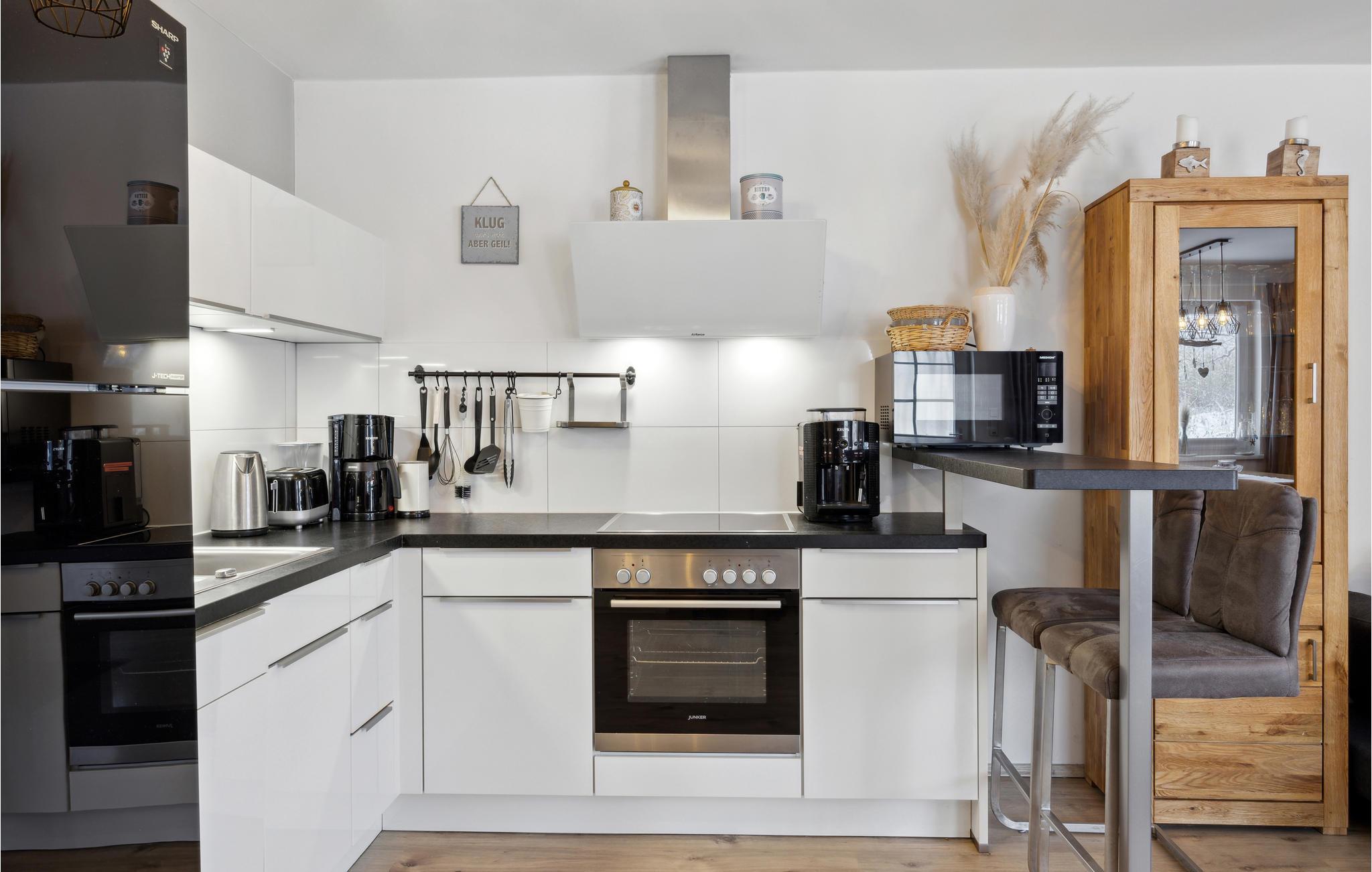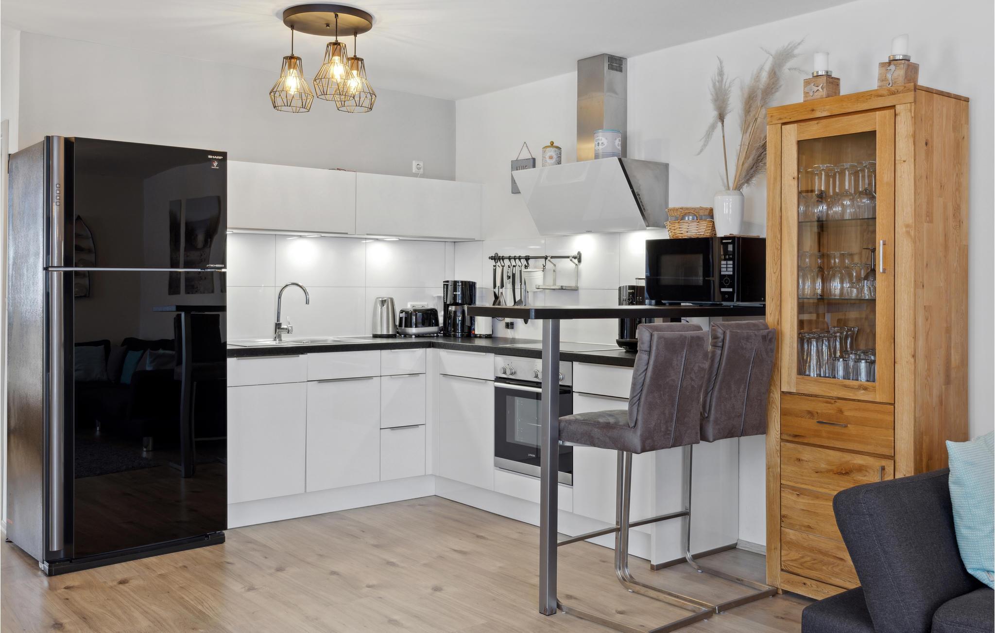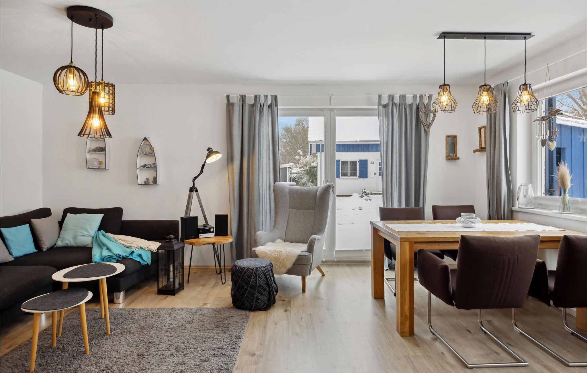 Diese hochwertige Doppelhaushälfte bietet Ihnen und Ihrer kleinen Familie auf gemütlichen Raum alles, was Sie sich wünschen. Die Unterkunft ist komfortabel und liebevoll gestaltet und die sorgfältig aufeinander abstimmten Möbel sorgen für eine heimelige Atmosphäre, sodass Sie sich wie zuhause fühlen werden. Dank der großen Fensterfronten fällt besonders viel Tageslicht in den Wohnbereich.