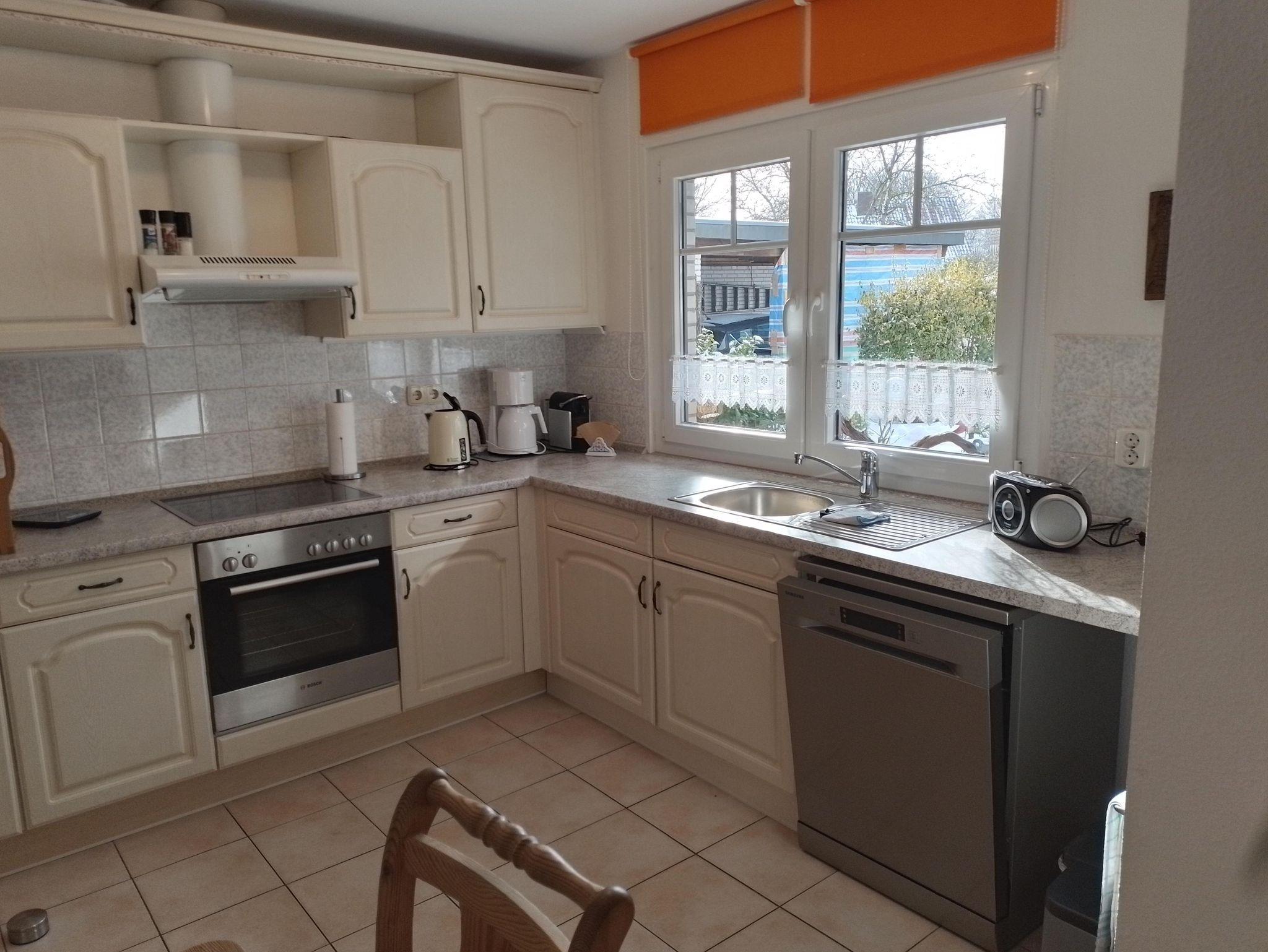 Liebe Gäste, wir fahren auch gerne in den Urlaub und wissen was Urlauber wünschen und von einer Ferienwohnung erwarten! Damit sie sich rundum wohlfühlen, haben wir unsere geräumige 60 qm große Ferienwohnung in der Lindenallee liebevoll und praktisch für sie eingerichtet. Eine Einliegerwohnung in einem Winkelbungalow zur Ferienwohnung fachmännisch gestaltet, mit eigenem Eingang , zu ebener Erde, für Allergiker geeignet, mit Wohnzimmer, Schlafzimmer, Küche, Badezimmer und Flur lädt sie zum Erholen und Verweilen ein. WLAN ist vorhanden. Das nach Süden ausgerichtete Wohnzimmer ist folgendermaßen ausgestattet: Eine Terrassentür und 2 Fensterfronten zum Blumengarten, eine bequeme Couch,die zur 2x2 m Schlafcouch umgerüstet werden kann (aus 2015), geeignet für 2 Kids oder 1 Erw., 2 Lehnsessel, Glas-Couchtisch, Sat-TV Sony 70 cm,, Kennwood Stereo-Receiver, DVD/ CD-Player, diverse Spiel- Natur- und Kinderfilme, Musik-CD's, Gläserschrank, Brett und Kartenspiele, Bücherschrank mit Leselektüre und Fachliteratur über Schleswig-Holstein. Der Fußboden ist ein Laminatboden und mit 2 Sisalteppichen belegt. Ein lichtdurchflutetes Schlafzimmer. Eine Fensterfront zur aufgehenden Sonne und in den Garten. Das Zimmer bietet für 2 Personen Schlafgelegenheit in zwei Einzelbetten, die auch auseiandergestellt werden können. Eine Außenjalousie kann das Zimmer in völlige Dunkelheit hüllen. Zwei Nachtschränkchen mit Leselampen und Radiowecker stehen neben den Betten. Ein großer Wäsche- und Kleiderschrank bietet ihnen die Möglichkeit, ihre Urlaubsgarderobe bequem und knitterfrei während der Urlaubszeit abzulegen. Außerdem befindet sich ein Stuhl, ein Tischchen mit Spiegel für evtl. Kosmetika und Schminksachen im Schlafzimmer. Die Küche ist geräumig mit einem großem Fenster zum Garten. Ausgestattet mit einem 4 Pl. Herd mit Backofen, Kühlschrank ohne Gefrierfach,Geschirrspülmaschine, Mikrowelle, Küchenschränke mit div. Kochtöpfen und Geschirr; einfach alles was die Hausfrau benötigt. Wasserkocher, Kaffemaschine, Toaster, Eierkocher, Geschirrhandtücher. Radio ist vorhanden. An einem Küchentisch können 4 Personen Platz nehmen. Und wenn etwas fehlen sollte, wird es besorgt; wir sind jederzeit für sie da und helfen gerne! Neben der Küche ist ein Abstellraum. Groß genug und geeignet für ihre Koffer, Besen, Putzsachen, Staubsauger Wäscheständer, etc. Ein großes, helles Badezimmer von 3,60 x 2 m und einer Dusche von 1m x 0,90 m lässt jeden Besucher entzücken. WC, ein großes Waschbecken, Wäscheschränkchen und Borde für Handtücher und Toilettenartikel sowie vorhandenen Haartrockner bieten ausreichend Platz. Durch das große Fenster zum Garten leuchtet morgens die aufgehende Sonne ins Bad. Der Flur ist mit einem großen, stilvollen Schreibtisch, Schreibtischlampe und Stuhl sowie einer Flurgarderobe, einem Bücherbord mit Lektüre eingerichtet. Im Schreibtisch findet der Besucher diverse Fahrradkarten, Landkarten, Veranstaltungskalender, Fachzeitschriften, Hinweise zu Sehenswürdigkeiten und vieles mehr. Die gesamte Wohnungseinrichtung ist neu und liebevoll und maritim mit Knotentafel, Schiffsmodellen usw. ausgestattet. Im Garten stehen Liegestühle, Grill, Gartentisch und -Stühle zur Benutzung bereit. Fahrräder können ausgeliehen werden. Fahrradschuppen und ein Pkw-Abstellplatz auf eigenem Grundstück ist vorhanden.