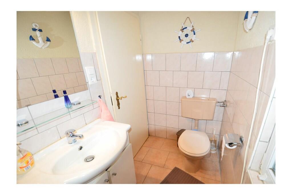 Parterre: Wohn- Essbereich, Ausziehcouch mit Schlaffunktion, TV/ Sat (Flatscreen), Radio/CD, Bücher und Gesellschaftsspiele für gemütliche Abende, Fliegenschutzgitter im Wohnzimmer und in den Schlafräumen, tragbare Elektroheizkörper im Bad und Wohnzimmer, Miniküche mit 2- Plattenherd (Ceran), Kühlschrank mit kleinem Gefrierfach, Mikrowelle und diversen Elektrogeräten, Schlafzimmer mit Doppelbett (2 Matratzen je 90×200) und Kleiderschrank, kleines Bad mit Dusche/ WC und Föhn Außenbereich: Terrasse mit Tisch und Gartenstühle, Sonnenschirm vorhanden, Grillmöglichkeit besteht (Grill vorhanden) Erholsame Urlaubstage im Bungalow – Toby – direkt am Ostseestrand Der Bungalow „Toby“ ist ruhig gelegen und nur 50 m bis zum schönen, weißen, feinsandigen Strand entfernt. Für die kleinen Gäste steht ein Kinderreisebett zur Verfügung. Fliegenschutz ist an den Fenstern vorhanden. Der Bungalow „Toby“ ist ein Nichtraucherquartier. Auf dem Campingplatz gibt es Einkaufsmöglichkeiten. Nutzung von Waschmaschine & Trockner nach Absprache und gegen Gebühr auf dem Campingplatz möglich,. Restaurants sind in unmittelbarer Nähe. Der ca. 2,5 km entfernte Hafen – Breege, bietet Ausflugsmöglichkeiten per Schiff zur Insel Hiddensee und zu den Störtebeker-Festspielen. Optimale Rad- und Wandermöglichkeiten um die schöne Insel zu erkunden, runden das Angebot ab. Der PKW-Stellplatz mit der Nr. 5 befindet sich direkt am Objekt. Bei uns sind Hunde willkommen (Gebühr Euro 7,50/ pro Hund/ pro Nacht).