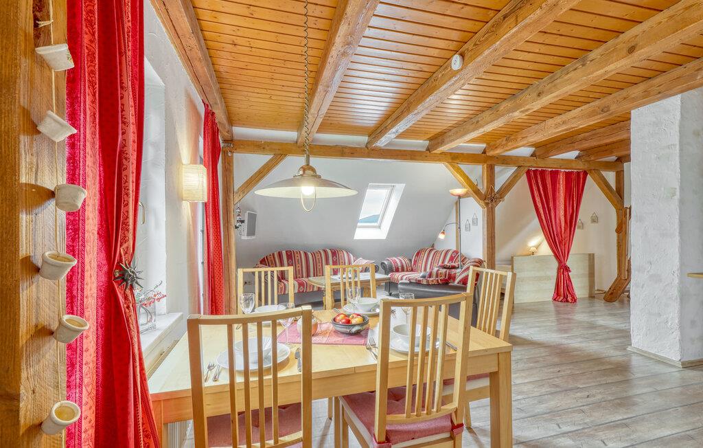 Die Ferienwohnung mit separatem Zugang befindet sich im Obergeschoss eines Wohnhauses auf einem großflächigen Naturgrundstück. Das Grundstück liegt in ruhiger Alleinlage im Ortsteil Gudderitz, ca. 1 km von Altenkirchen entfernt. Der Ostseestrand (Nonnevitz) ist nach etwa 3,5 km erreichbar. Die Ferienwohnung ist ausgestattet mit: Wohnbereich (Polstermöbel, TV, Radio), offene Küchenzeile (E-Kochfeld, Kühlschrank, Mikrowelle, div. Küchengeräte, Essplatz), Schlafbereich (Doppelbett), verschließbarer Schlafboden über steile Treppe (2 Betten), DU/WC, Zentralheizung. Vorhanden sind Sitzecke im Freien mit Grillplatz und Liegefläche, Spielplatz und Parkplatz.