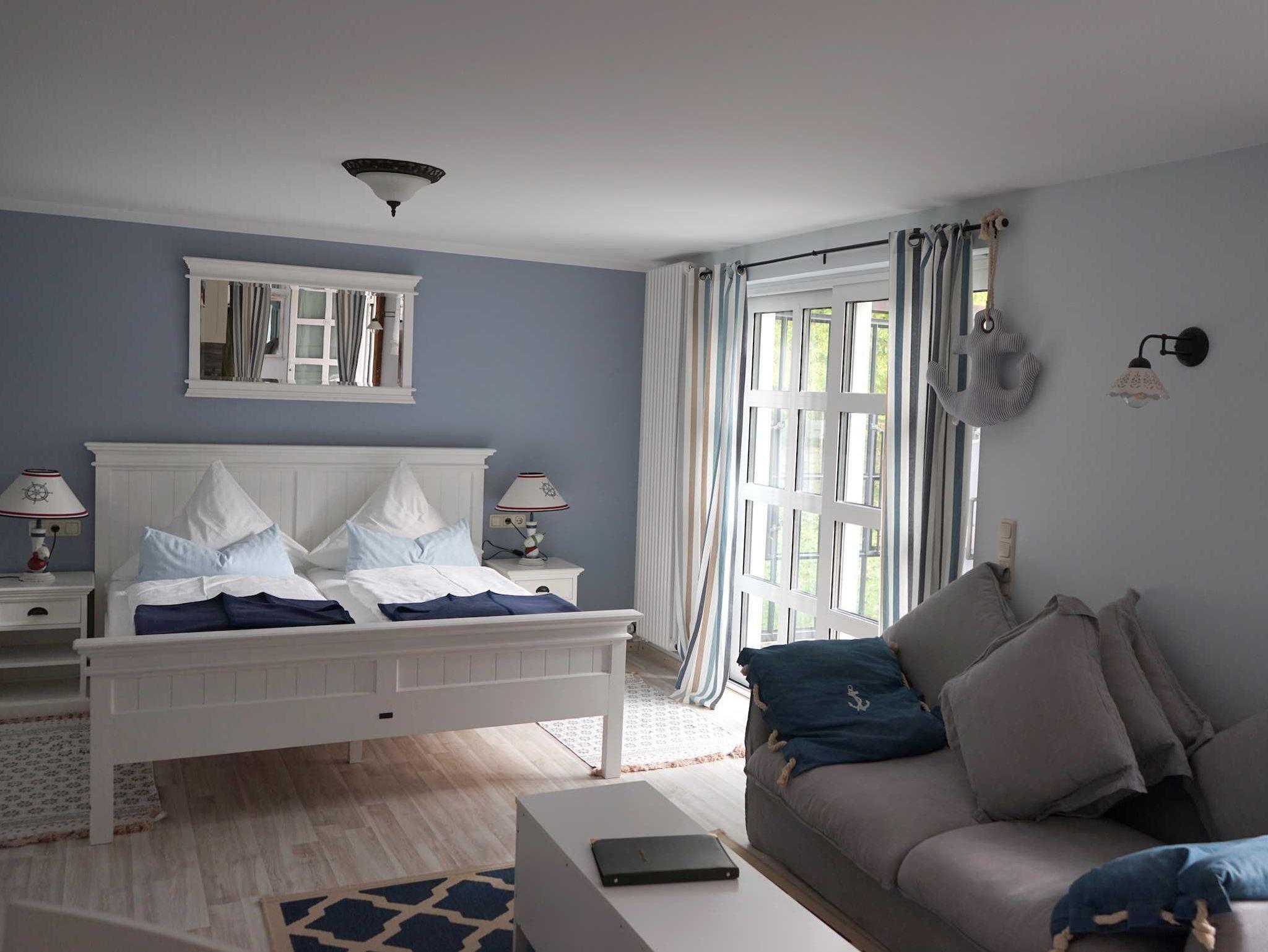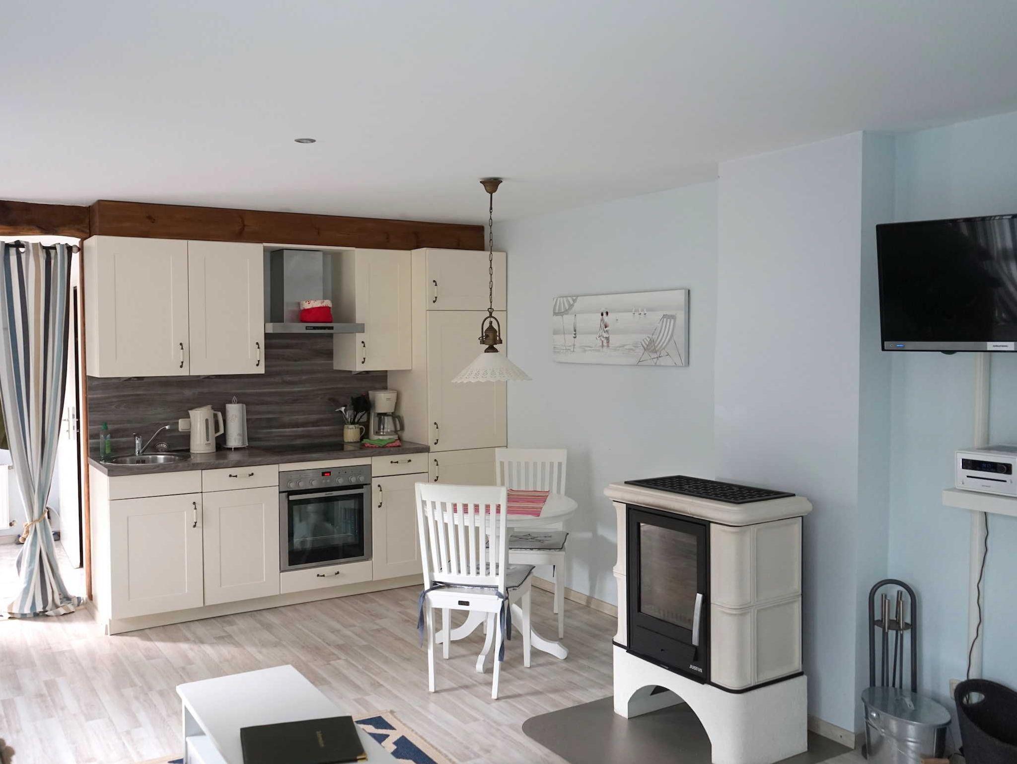 • kombinierter Wohn-/Schlafraum mit Kaminofen, Fernseher, Sat, Radio, WLAN, Doppelbett (160x200 cm)