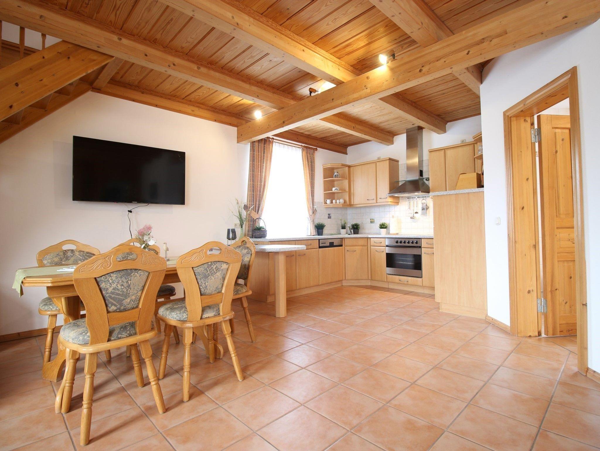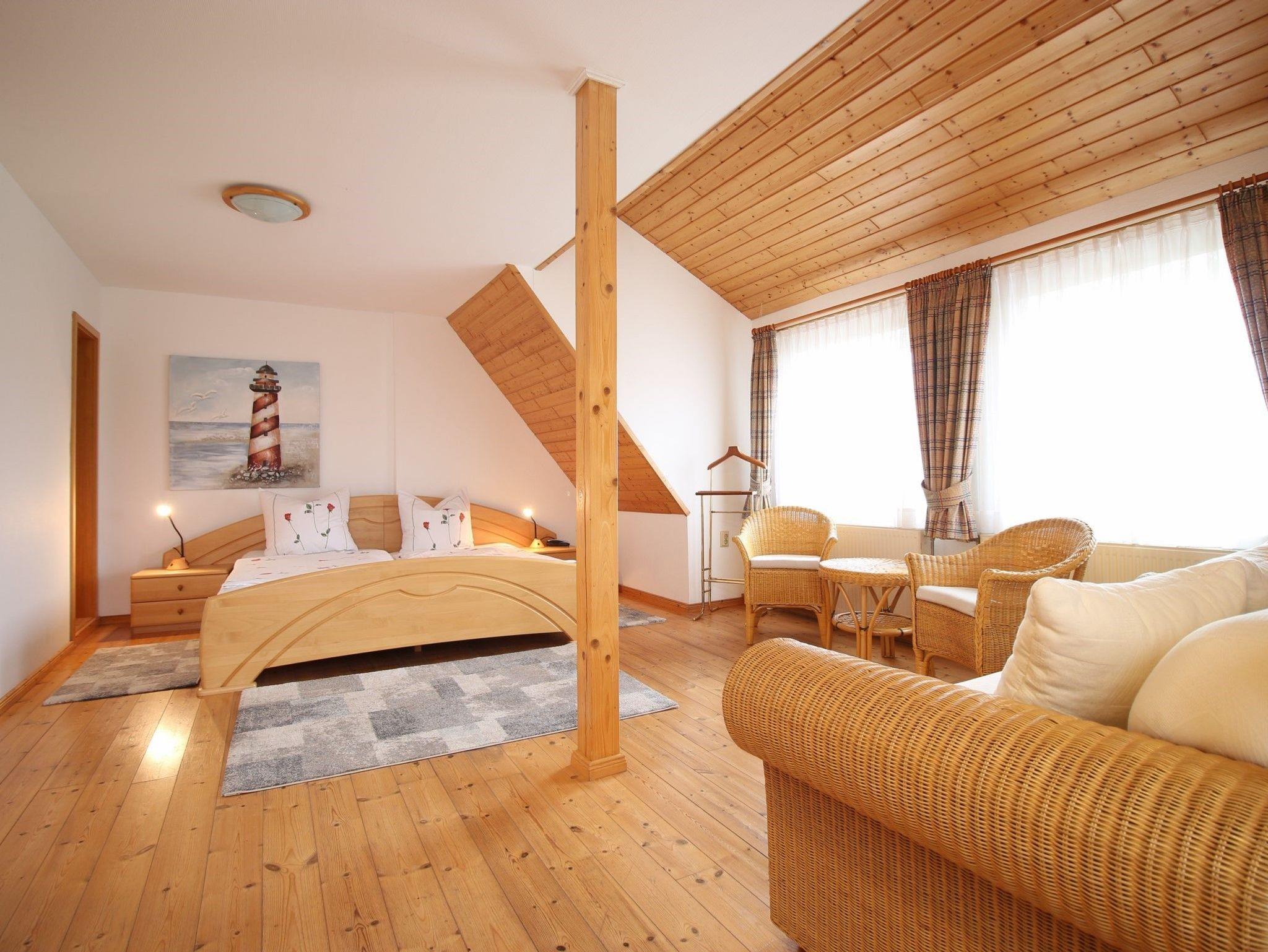 Die ca. 125 m² große Ferienwohnung erstreckt sich über zwei Etagen befindet sich im Anbau des Hauses der Gastgeberfamilie.