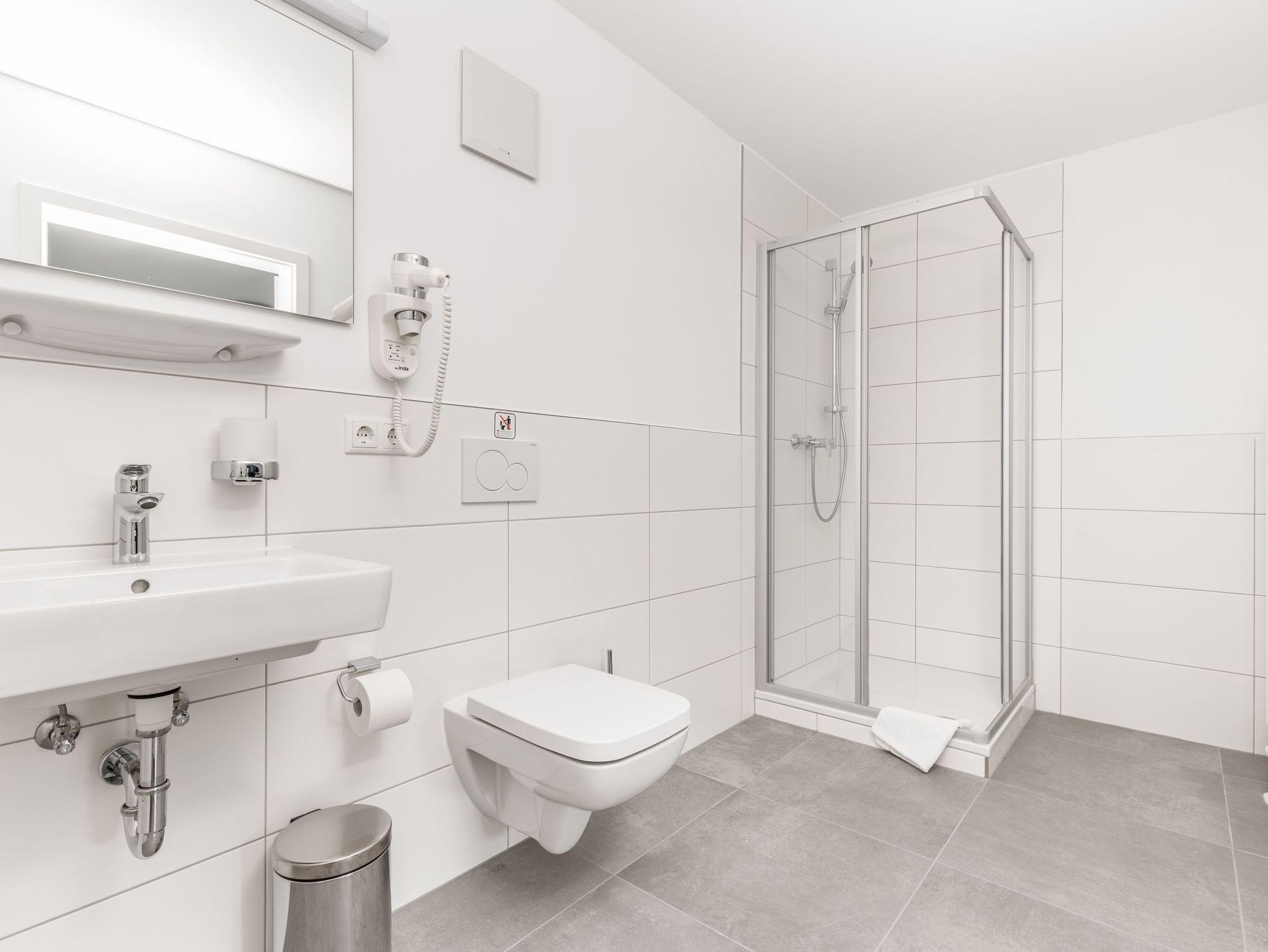 Zur Ausstattung gehören ein Bad mit Dusche und WC, ein Wohnbereich mit Esstisch, Kleiderschrank und TV sowie kostenfreies WLAN. Zusätzlich stehen ein Kühlschrank, eine Mikrowelle und eine Kaffee-Kapselmaschine zur Verfügung. Eine eigene Küche ist bewusst nicht vorhanden. Stattdessen nutzen Gäste die großzügige Gemeinschaftsküche auf dem Gelände mit allen notwendigen Kochutensilien.
