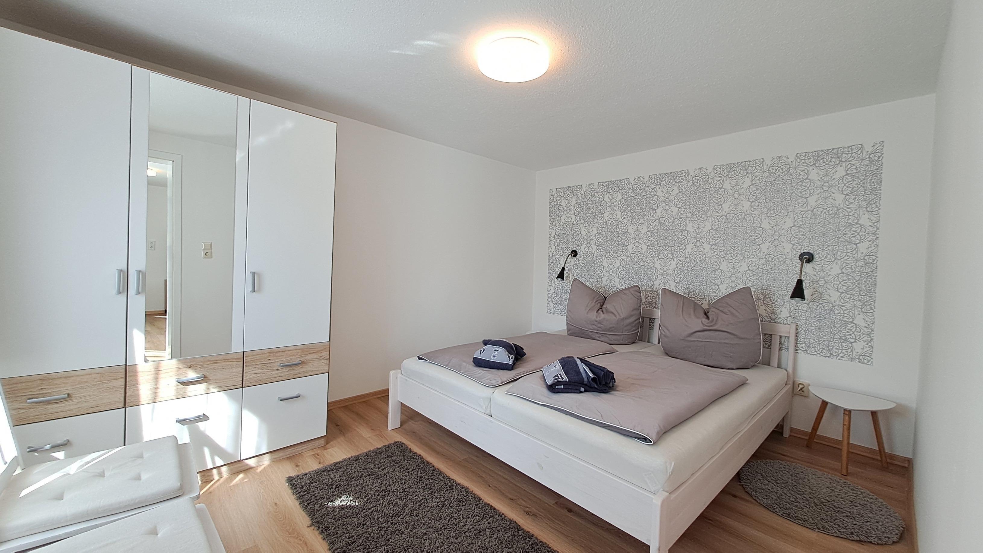 SCHLAFZIMMER?- mit Doppelbett (180x200 cm), zwei Nachttischen und -lampen sowie einem großen Kleiderschrank mit Spiegel
