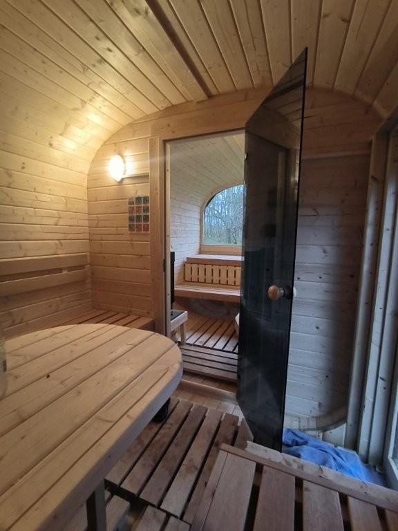 Im Außenbereich gibt es eine Faßsauna mit Entspannungsraum zur gemeinschaftlichen Nutzung. Es ist ein abschliesbarer Fahrradschuppen mit Stromanschluss vorhanden