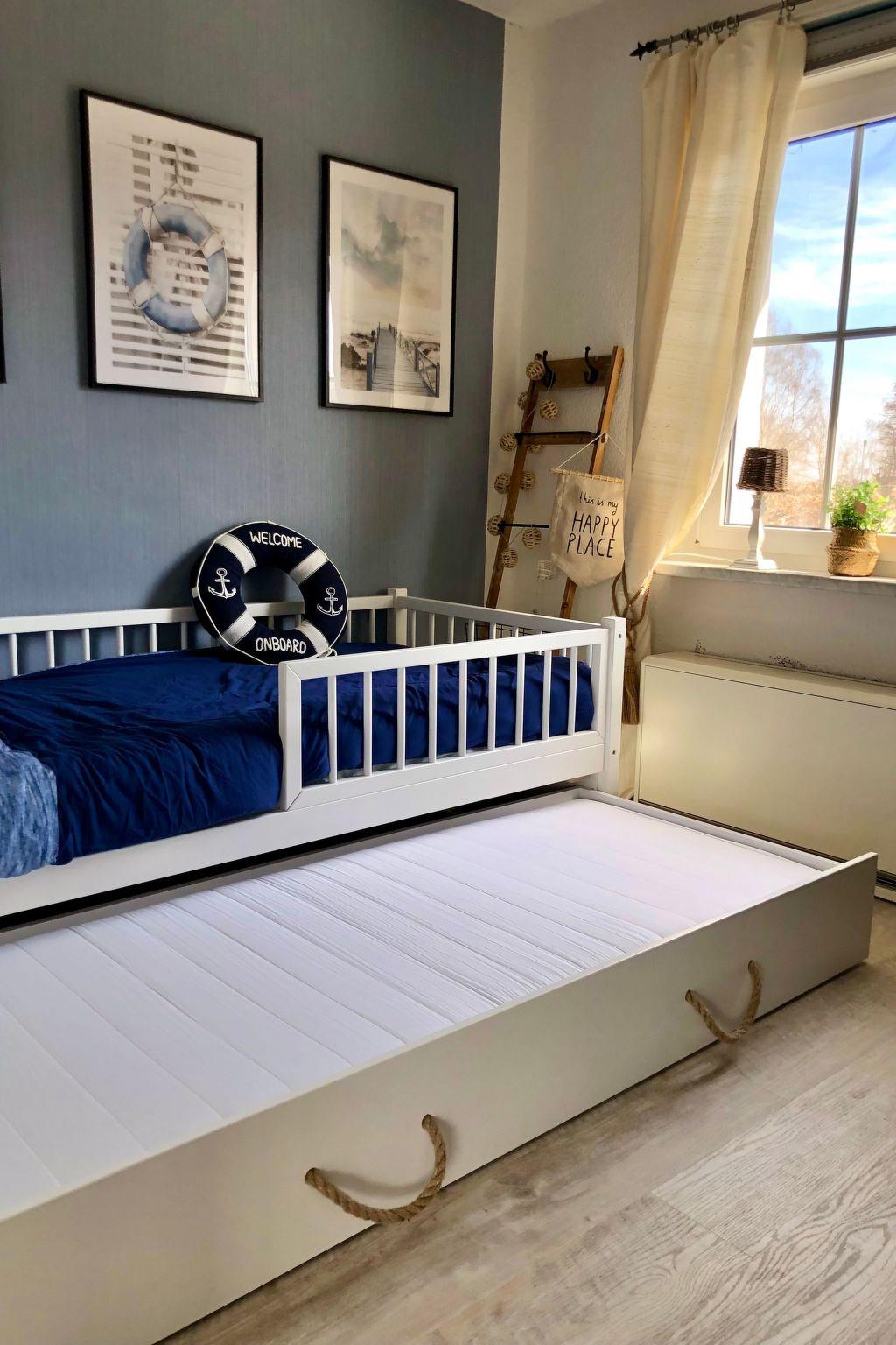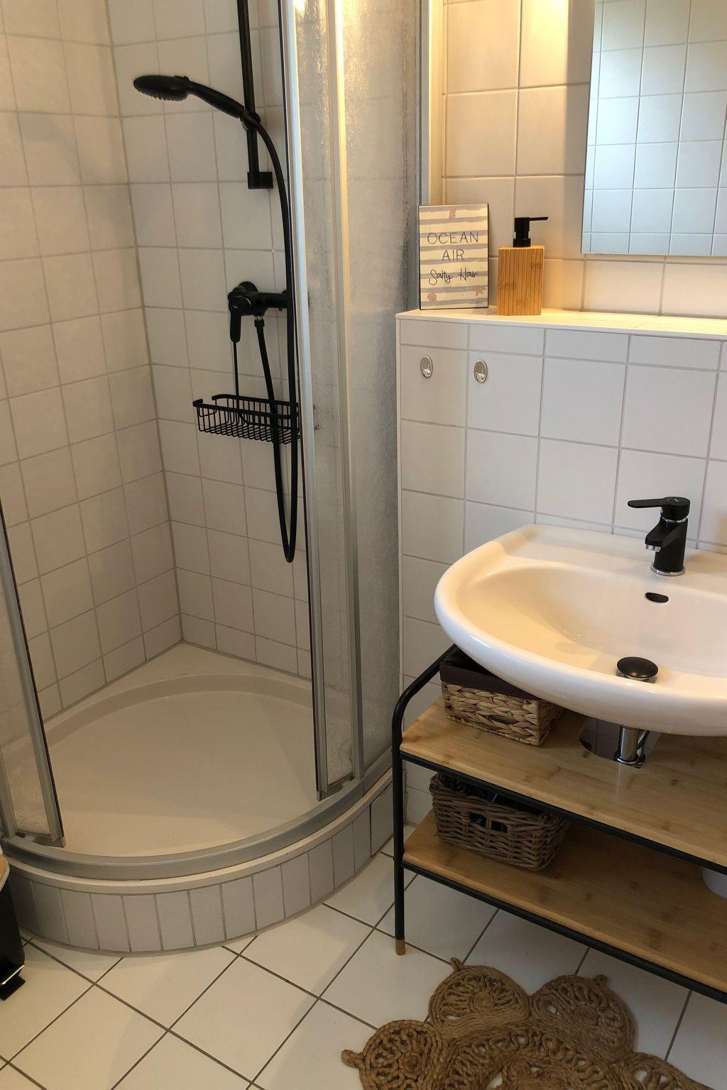 Im Inneren Ihres Ferienhauses erwarten Sie zwei sorgfältig eingerichtete Schlafzimmer, die beide abdunkelbar sind, um Ihnen und Ihren Liebsten erholsamen Schlaf zu garantieren. Ein gemütliches Badezimmer mit Dusche lädt nach einem langen Tag an der frischen Ostseeluft zur Entspannung ein. Obwohl das Haus über keine Klimaanlage und Fußbodenheizung verfügt, sorgt ein bereitgestellter Ventilator an warmen Tagen für angenehme Kühle. Für zusätzlichen Komfort sorgen eine gemeinschaftlich genutzte Waschmaschine und ein Wäschetrockner, ideal für längere Aufenthalte.