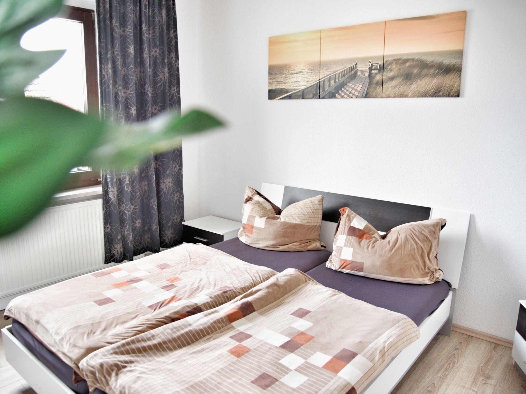 Genießen Sie einen erholsamen Urlaub in einer modern eingerichteten Ferienwohnung auf ca. 98 m², die hohe Ansprüche an einen komfortablen Urlaub bedient. Die Wohnfläche unterteilt sich in zwei Schlafzimmer mit jeweils einem großzügigen Doppelbett (180 cm x 210 cm), das von zwei beidseitigen Nachttischen mit Leselampen umgeben ist. Vor dem Bett steht stets ein geräumiger Kleiderschrank mit Spiegeltüren, der ausreichend Verstauungsmöglichkeiten für Ihr Reisegepäck bietet. Herzstück der Wohnung ist der 30 m² umfassende Wohn- und Schlafraum mit integrierter Küche und bequemen Essplatz. Auf der ausziehbaren Ledercouch ( 2,35 x1,94 m) entspannen Sie nach einem Tagesausflug während der Flachbildfernseher mit Sat.-TV, DVD-Player und TV-USB-Anschluss für Unterhaltung sorgt. Im ausgezogenen Zustand bietet die Couch zwei Personen einen bequemen Schlafplatz. Die offene Küche ermöglicht Ihnen eine umfangreiche Selbstversorgung anhand eines Vierzonenkochfelds, eines Backofens, eines Kühlschranks mit Gefrierfach, sowie zahlreicher Kleinelektrogeräte, von einem Toaster über eine Mikrowelle bis zur Kaffeemaschine. Zu gemeinsamen Speisen nehmen Sie Platz im ansehnlichen Essbereich auf einer Eckbank mit zwei komfortablen Schwingstühlen. Im Badezimmer ist eine Duschkabine, ein Handwaschbecken mit WC und Handtuchtrockner, eine Waschmaschine sowie ein Badezimmerfenster vorhanden.