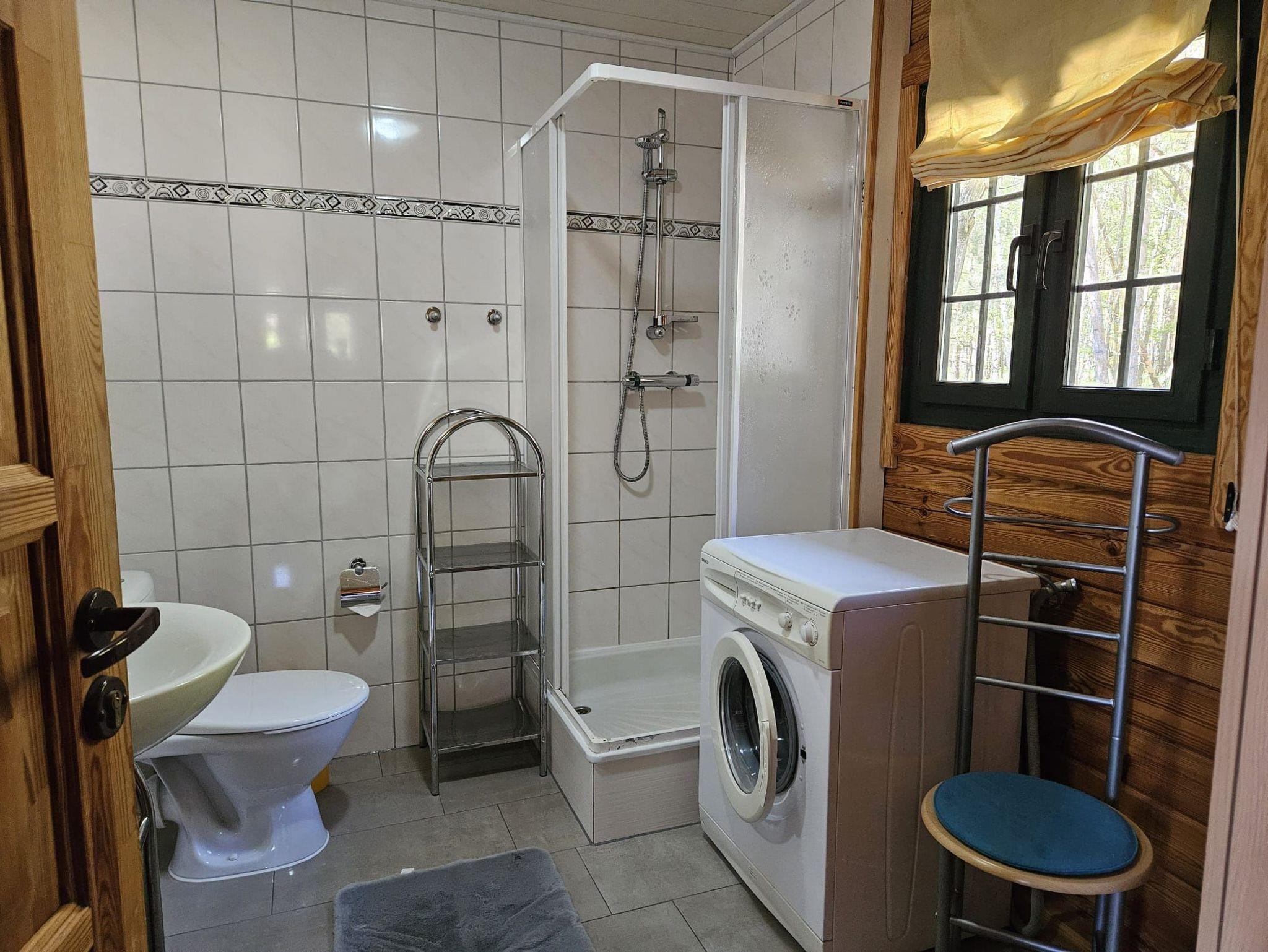 Die Ferienwohnung hat eine normale, solide Ausstattung, ist sehr ruhig direkt am Wald gelegen. In der Wohnung liegt Auslegeware, es ist ein Nichraucherhaus. Auf dem Hof ist eine Terrasse. Zur Info: In die obere Etage führt eine steile Treppe