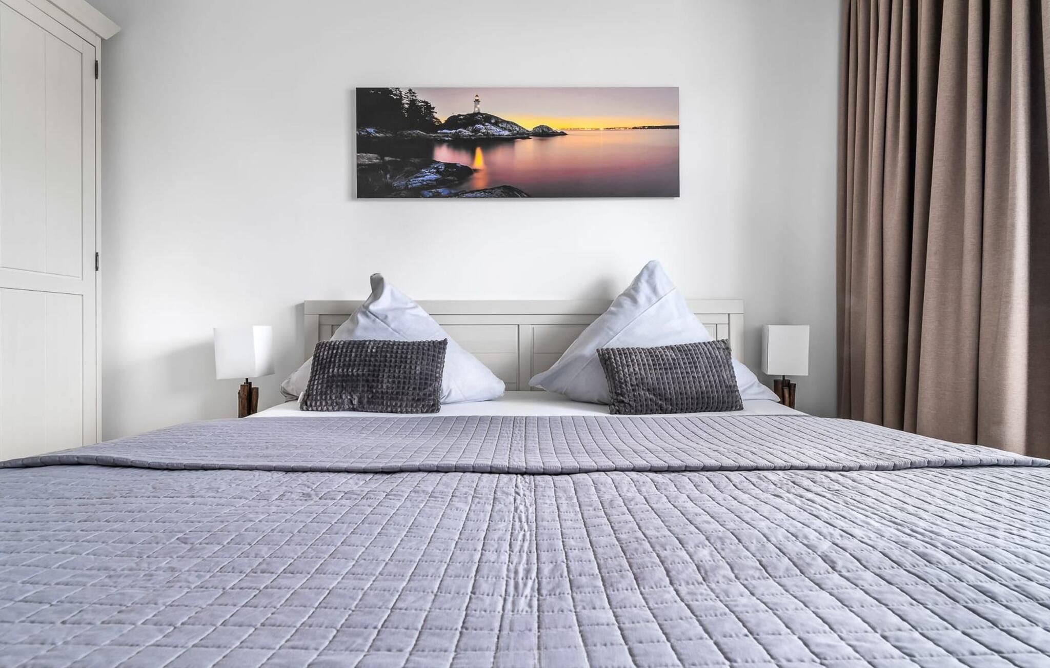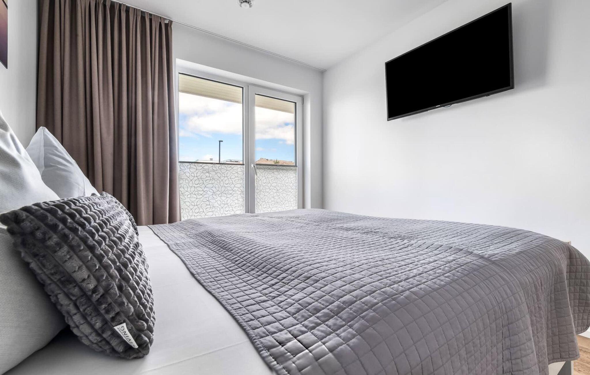 Die beiden Schlafzimmer bieten Zugang zur zweiten Terrasse und bieten zwei zusätzliche TVs.